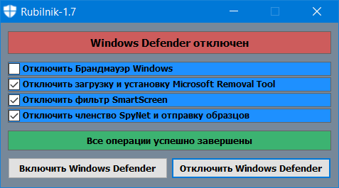 Windows Defender - отключается на усмотрение пользователя (для "Full", в "Compact" он вырезан и отключен).