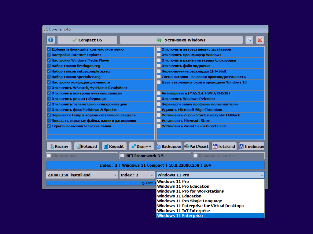 Система Windows 11 21H2 Compact & Full x64 (Build 22000.258) включает два индекса: Full и Compact.