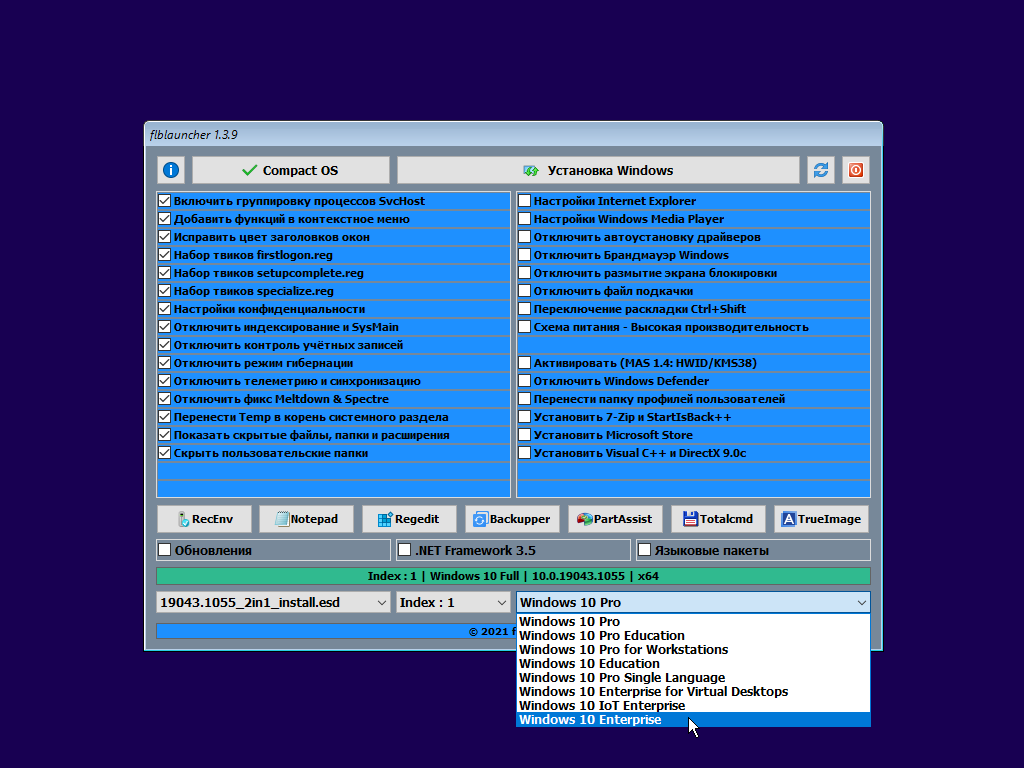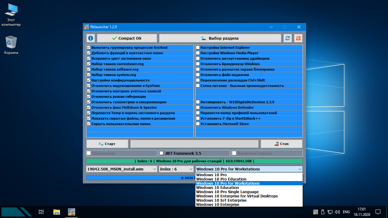 Compact OS - это не версия сборки, это применить/отменить сжатие к выбранному индексу.