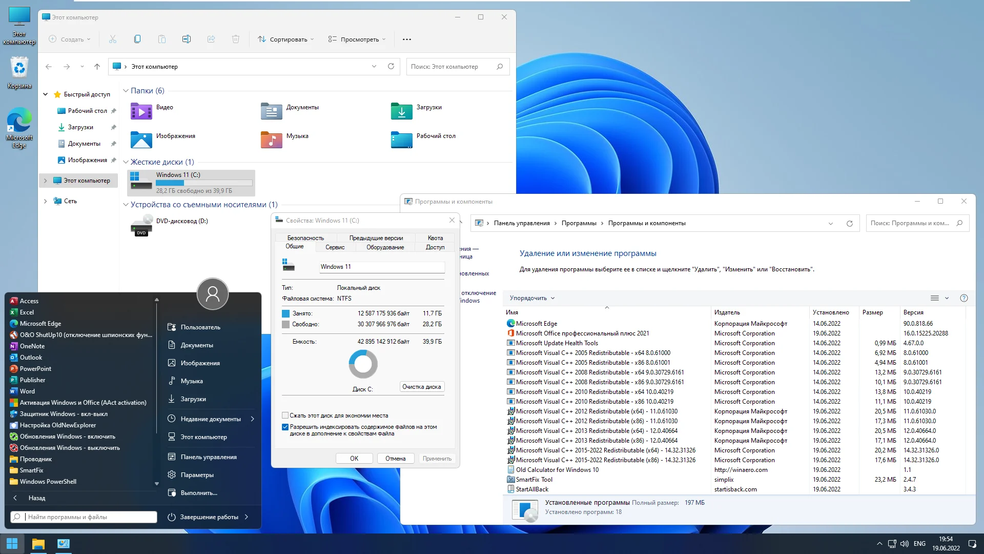 Windows 11 v21H2 22000.739, 4 русских и 4 английских редакции x64, обновлены до 06.2022, C++ Redistributable Package, MsDART в восстановлении Windows, Word/Excel/PPTX Access Publisher Outlook OneNote (опционально), StartAllBack меню (опционально),