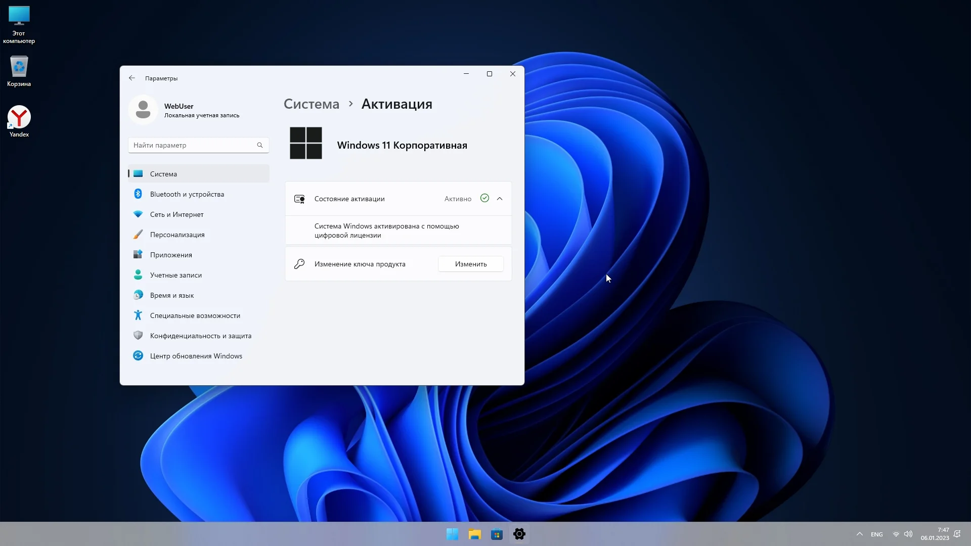 Установка Windows 11 22H2 на жесткий диск форматированного (не NTFS), установку можно производить с помощью полуавтоматической установки или выбора раздела. После активации сборка начинает автоматически работать подключением к интернету.