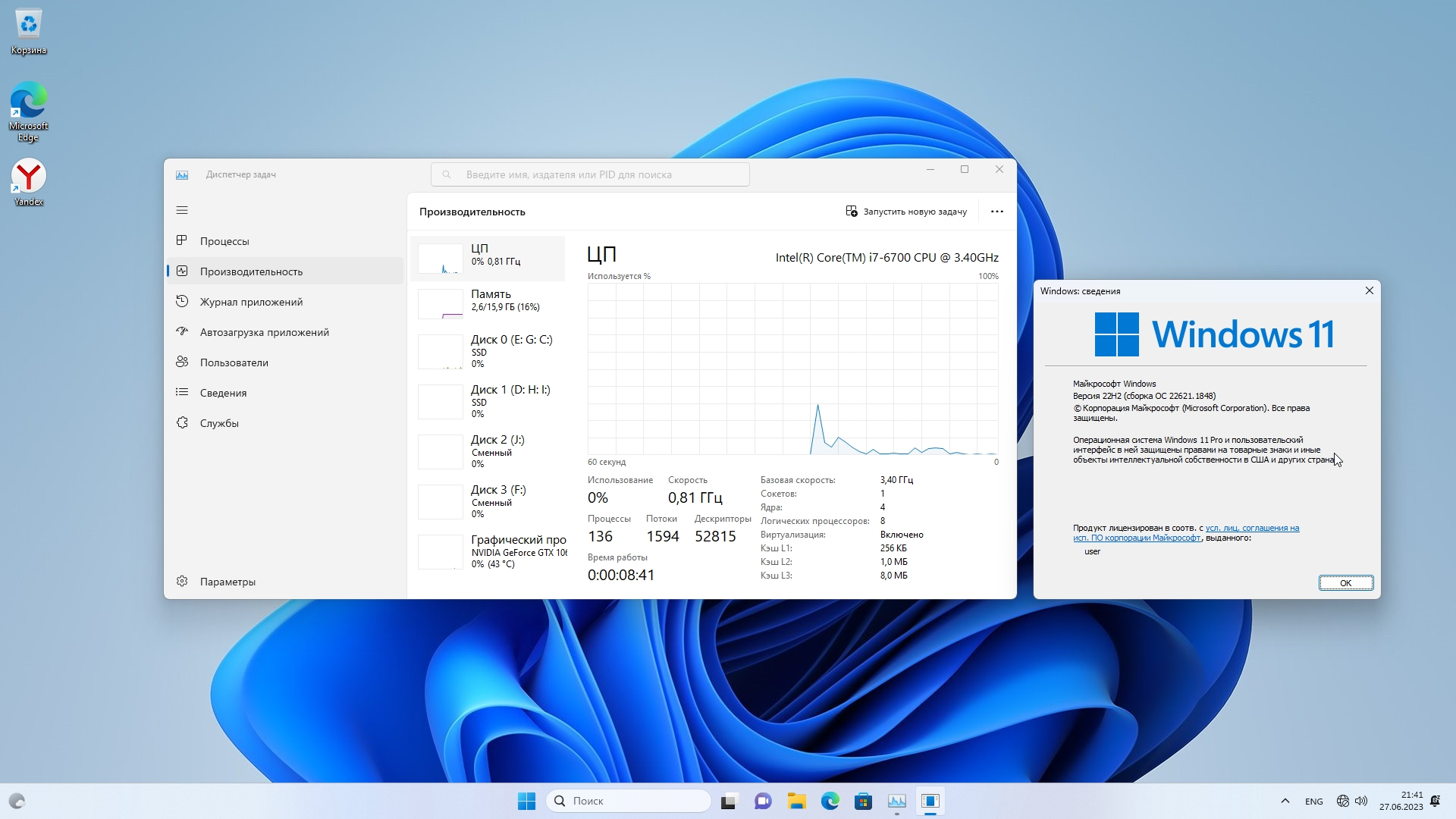 Обновленная версия Windows 11 22H2 22621.1848 позволяет выбирать русские языковые версии операционной системы: от домашней до корпоративной, всего перед установкой выбирается автоматически. При этом включены последние обновления безопасности (из июн-2023), а также встроенные системные библиотеки.