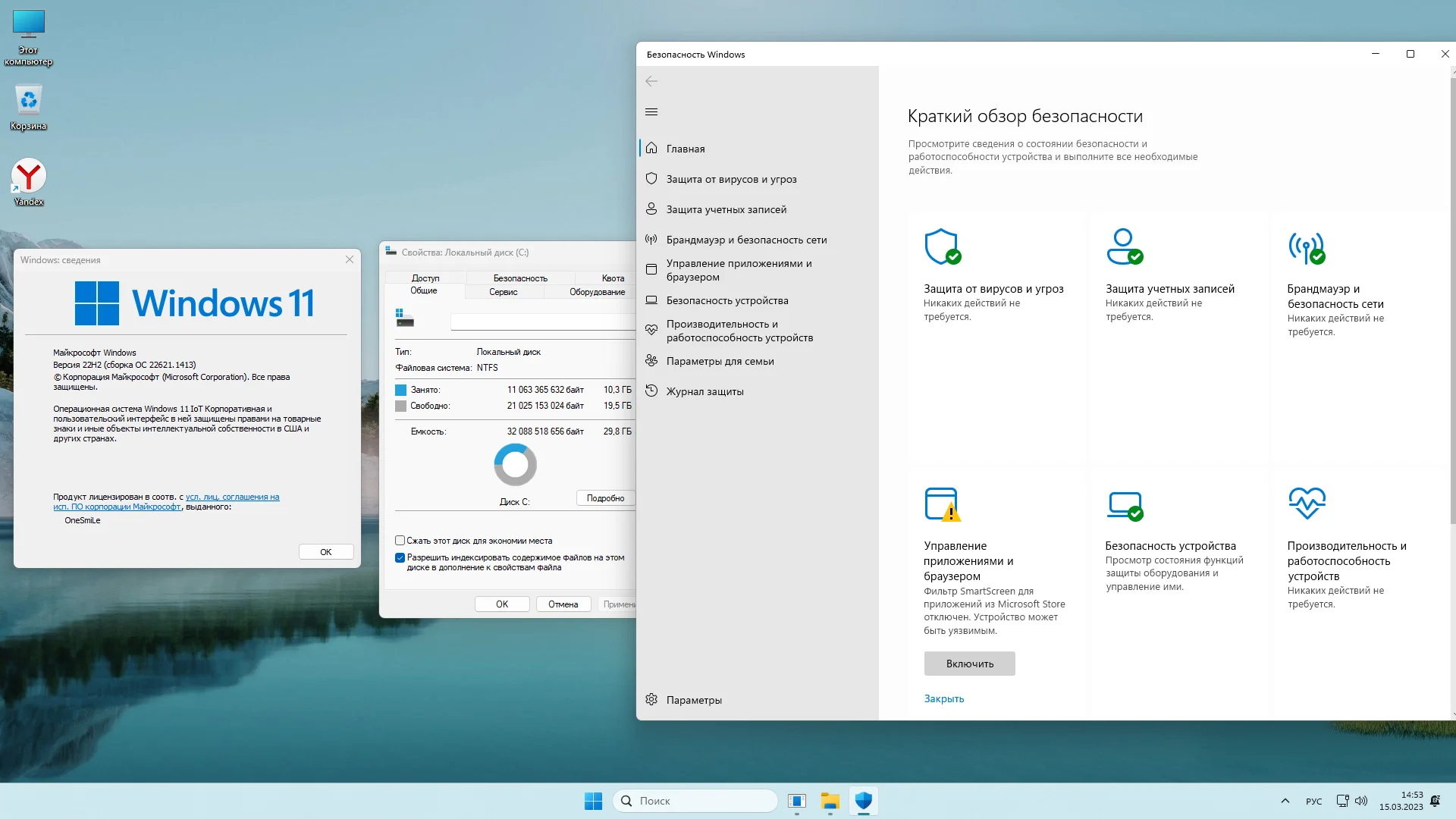 Сборка Windows 11 22H2 x64 Rus by OneSmiLe (Build 22621.1413) включает следующие изменения: