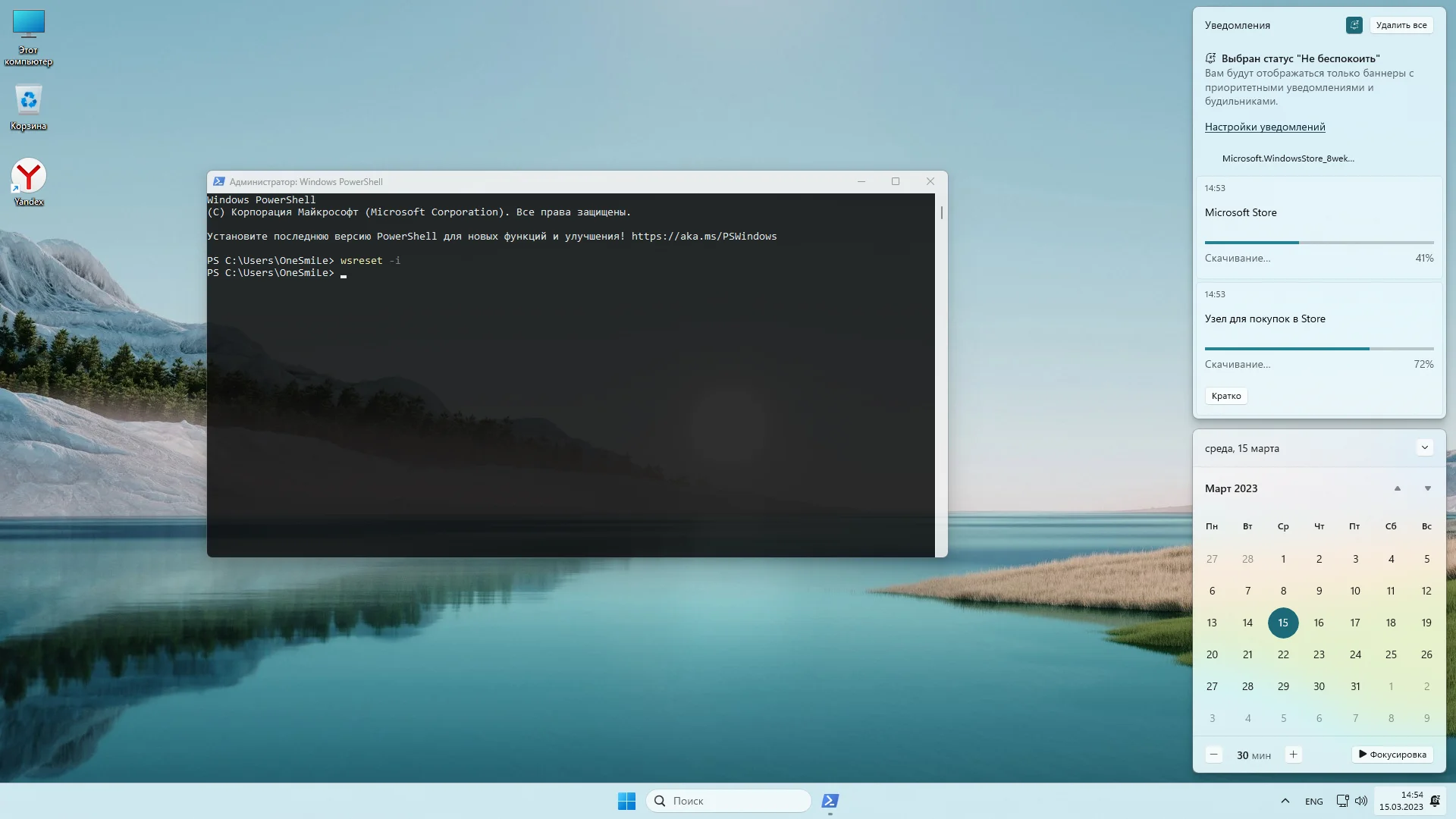 - Введите команду "wsreset -i" в PowerShell на администраторе (в режиме по умолчанию)