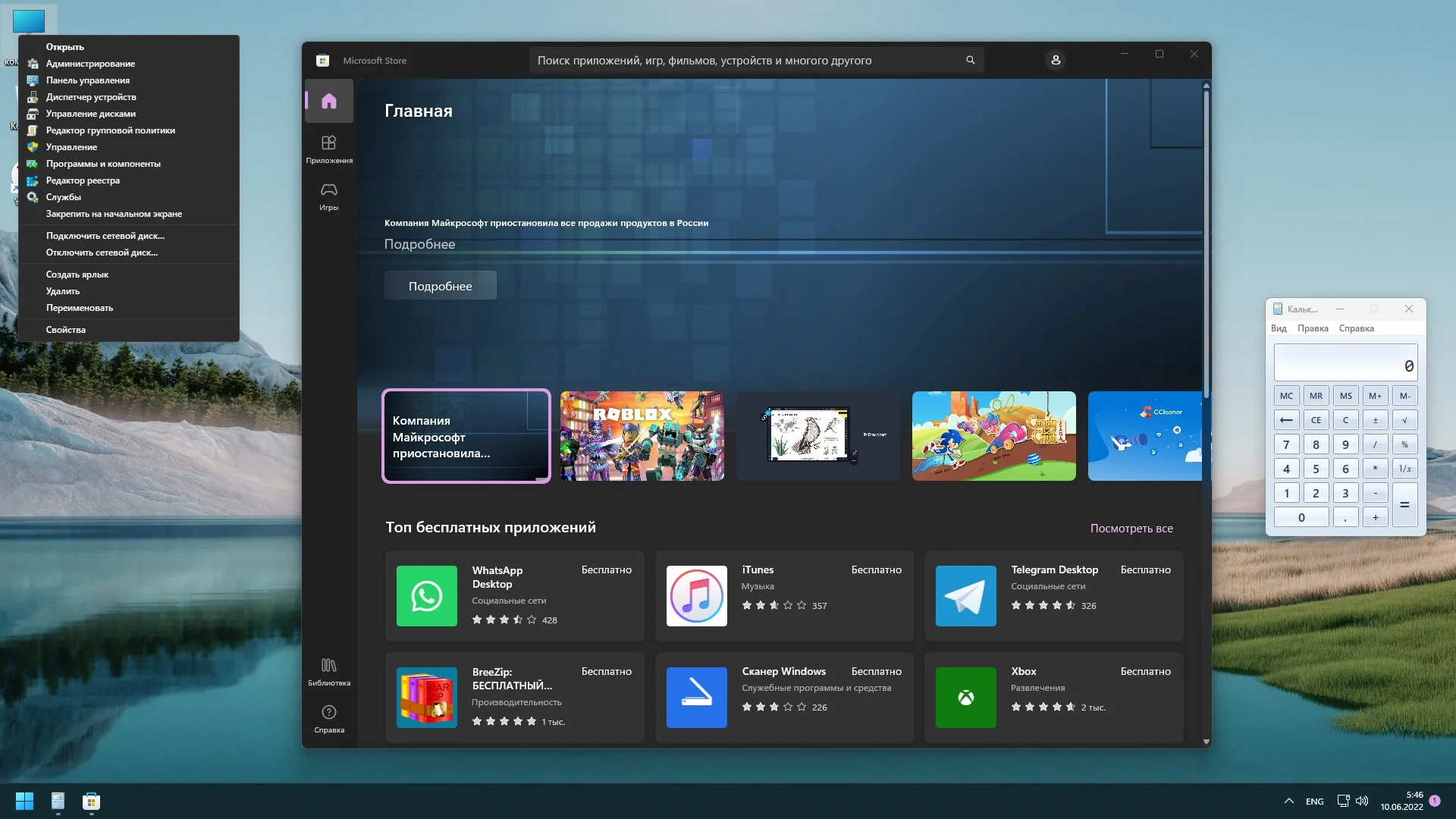 Многие современные приложения: Market, Paint, Notepad (без магазина)