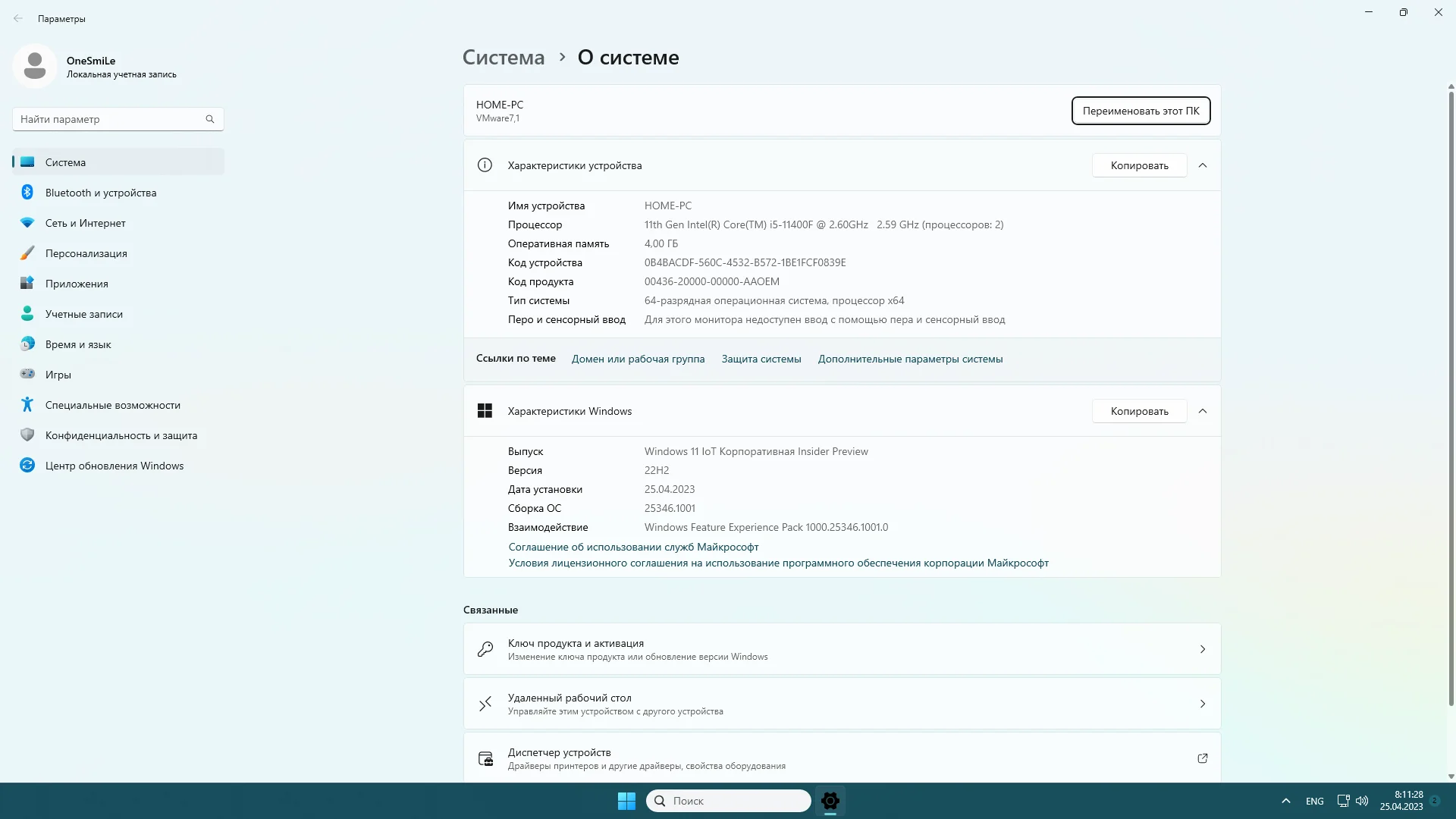 Установлен образ системы Windows 11 22H2 в оригинальном виде с сборкой prog_build: 25346.1001, активация W10Digital.Процессор не менее двух ядер с частотой более 1 ГГц и ОЗУ 4 ГБ. Диск должен иметь места на диске 20 ГБ или больше, с видеоадаптером DirectX 12 и выше версии с драйверами WDDM 2.0.