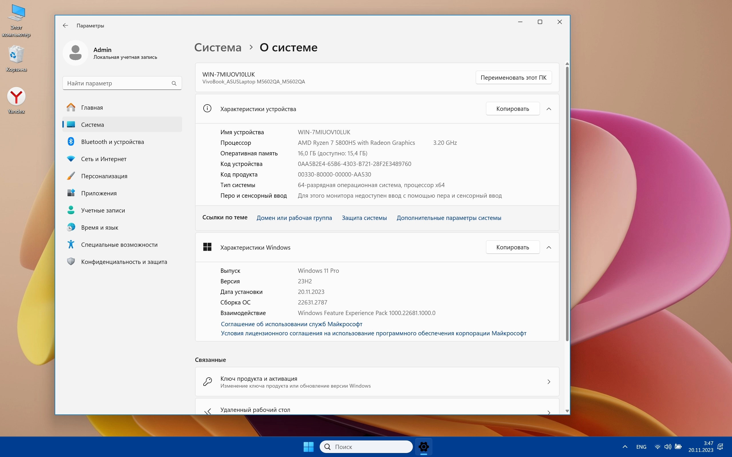 Сборка облегченная версия профессиональной редакции Windows 11. Не удалено приложения и службы, которые большинство пользователей не использует.