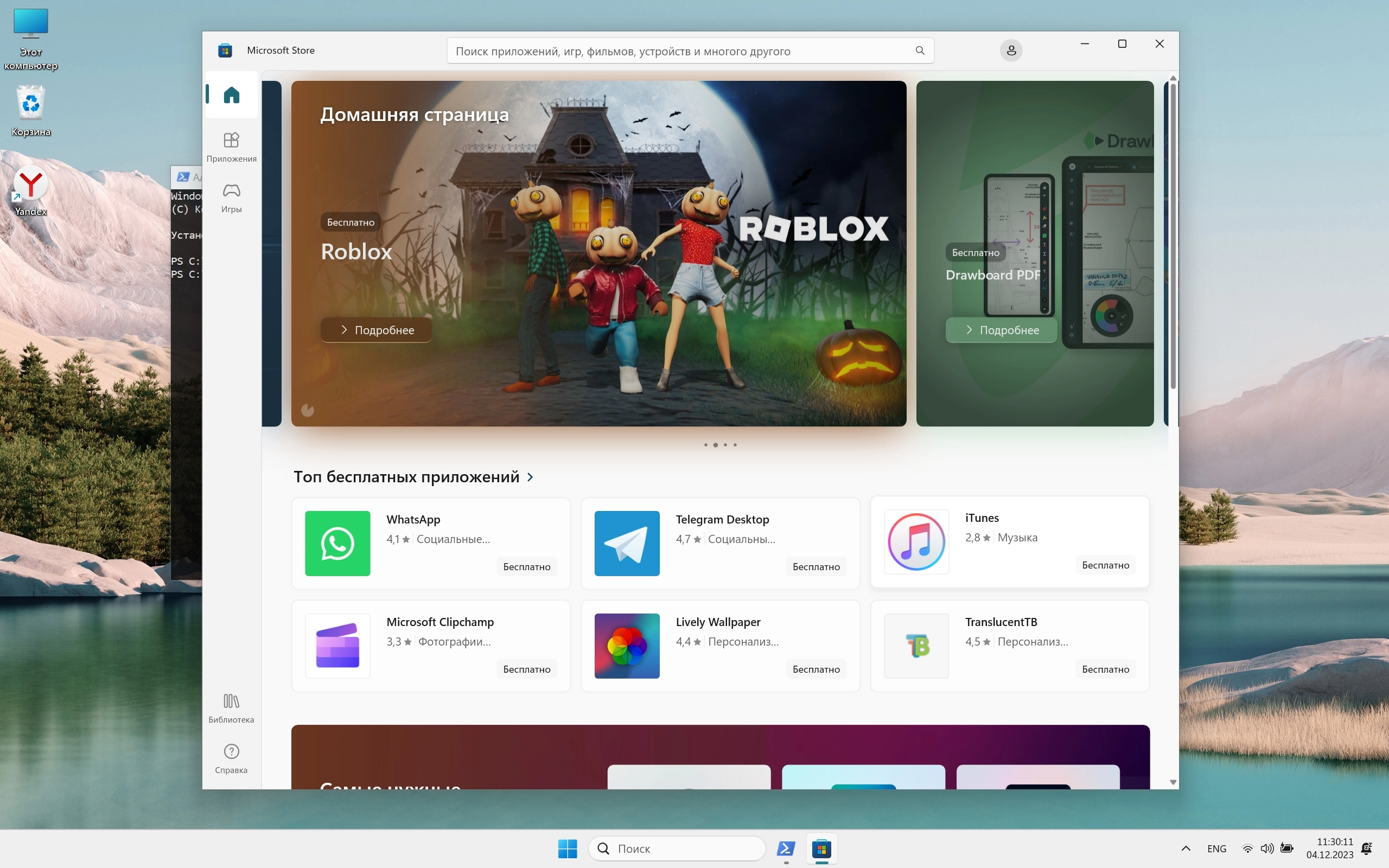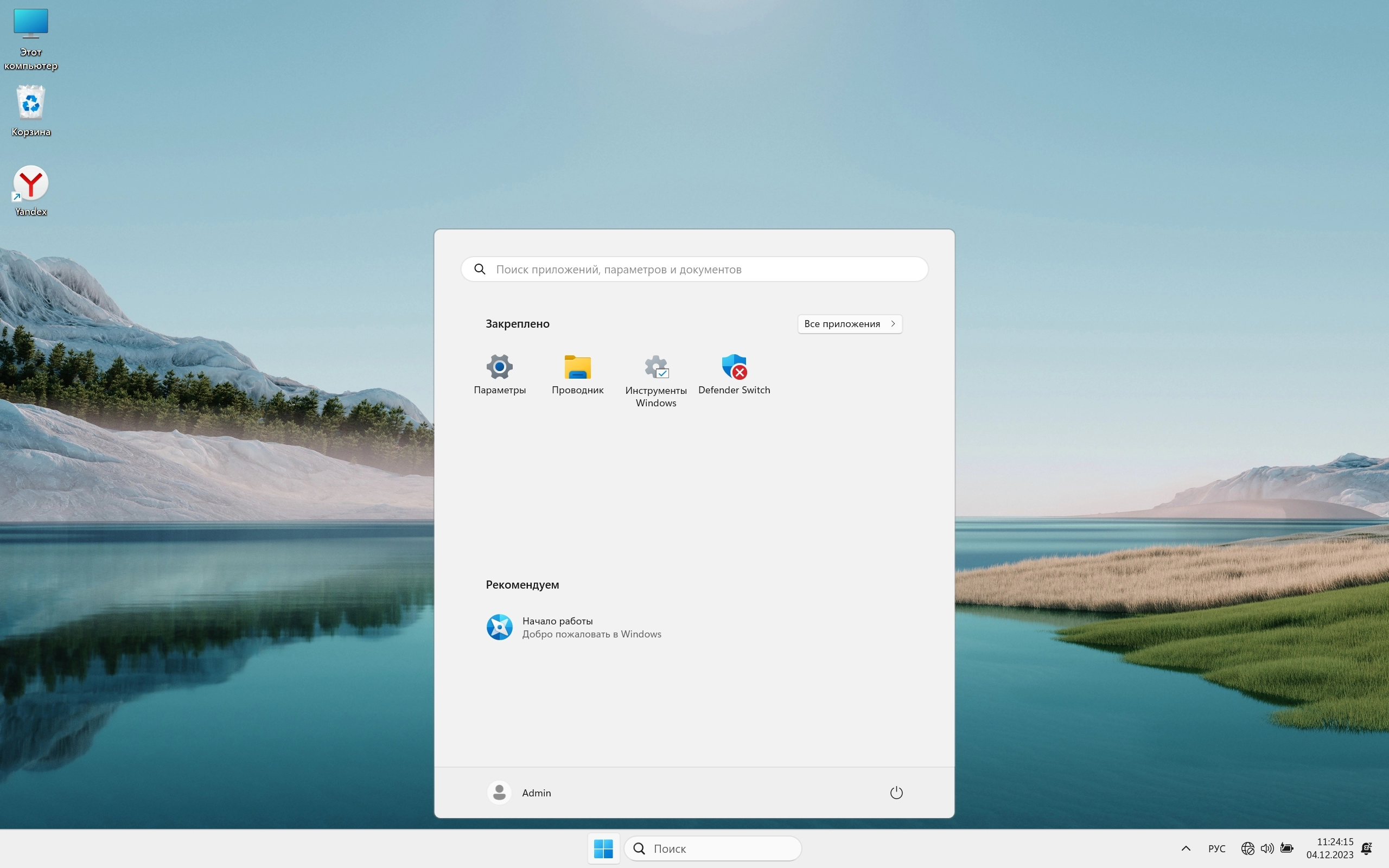 Однако, для Windows 11 23H2 x64 Русская поставляется только без сторонних приложений и утилит, так что Edge и другие модернные программы не установлены. Осталось только установить необходимые программное обеспечение: калькулятор, 7-Zip и Yandex.
