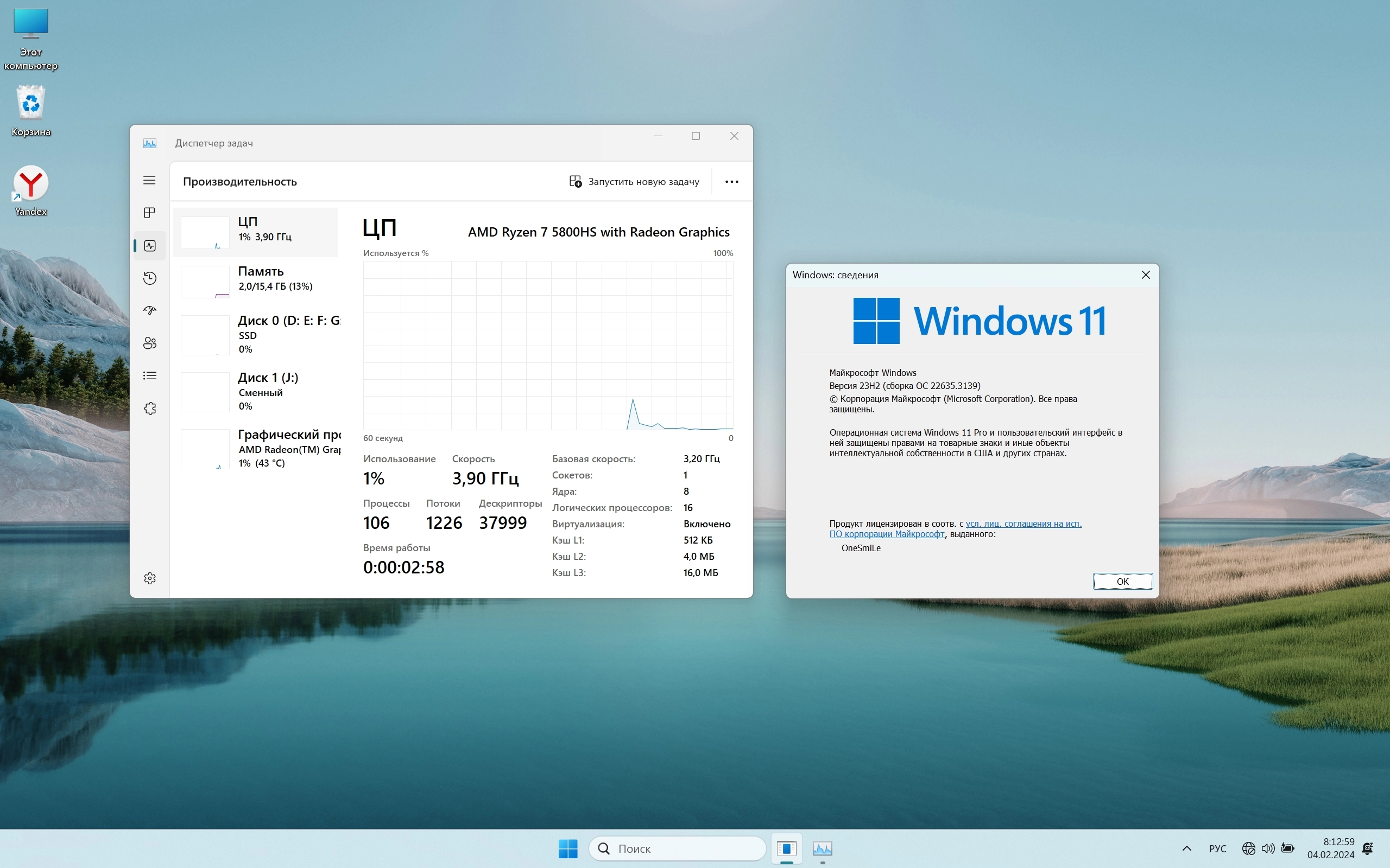 - Установлено: 7-Zip, Yandex