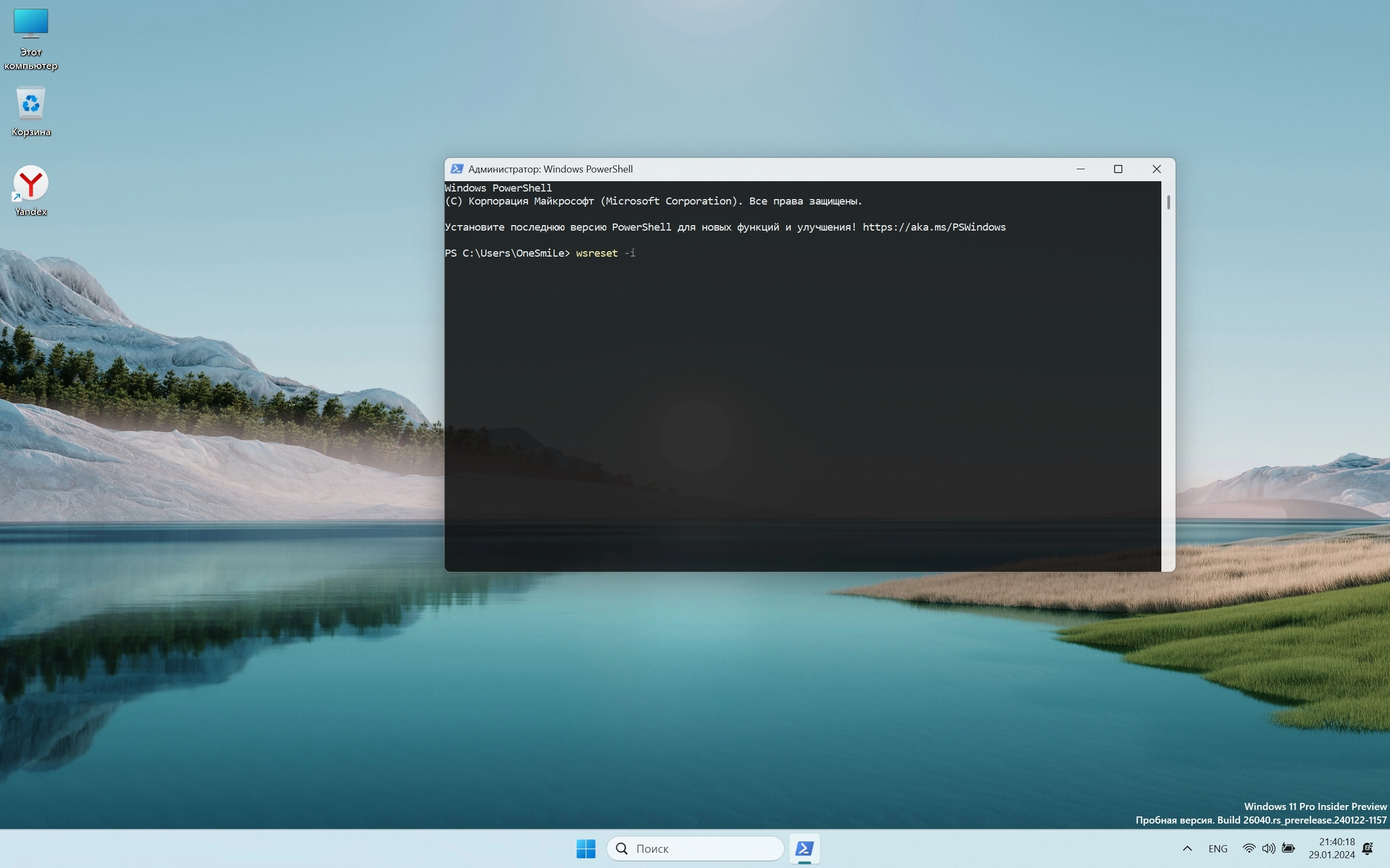 - При установке магазина в PowerShell используем команду wsreset -i для получения доступа к Internet