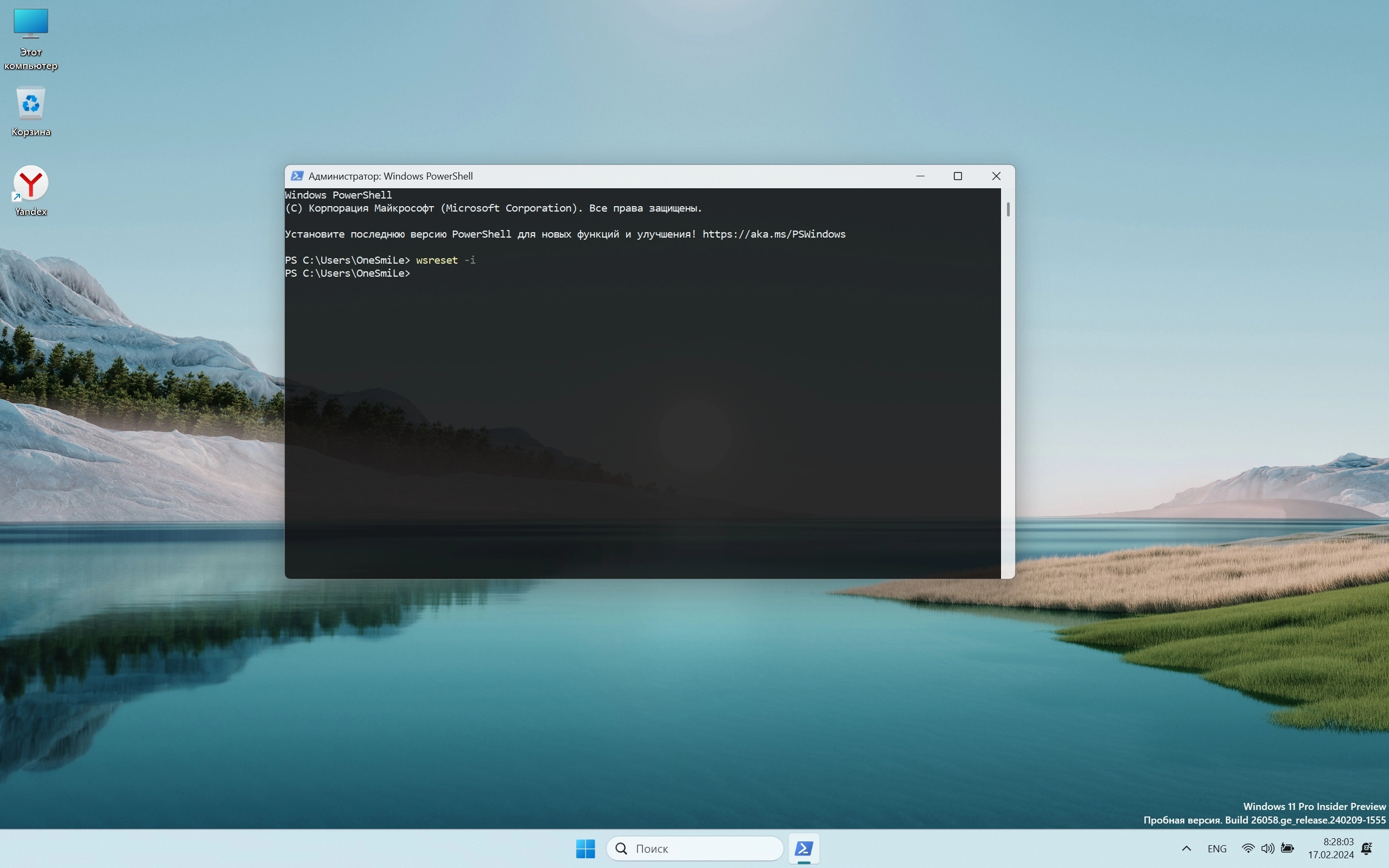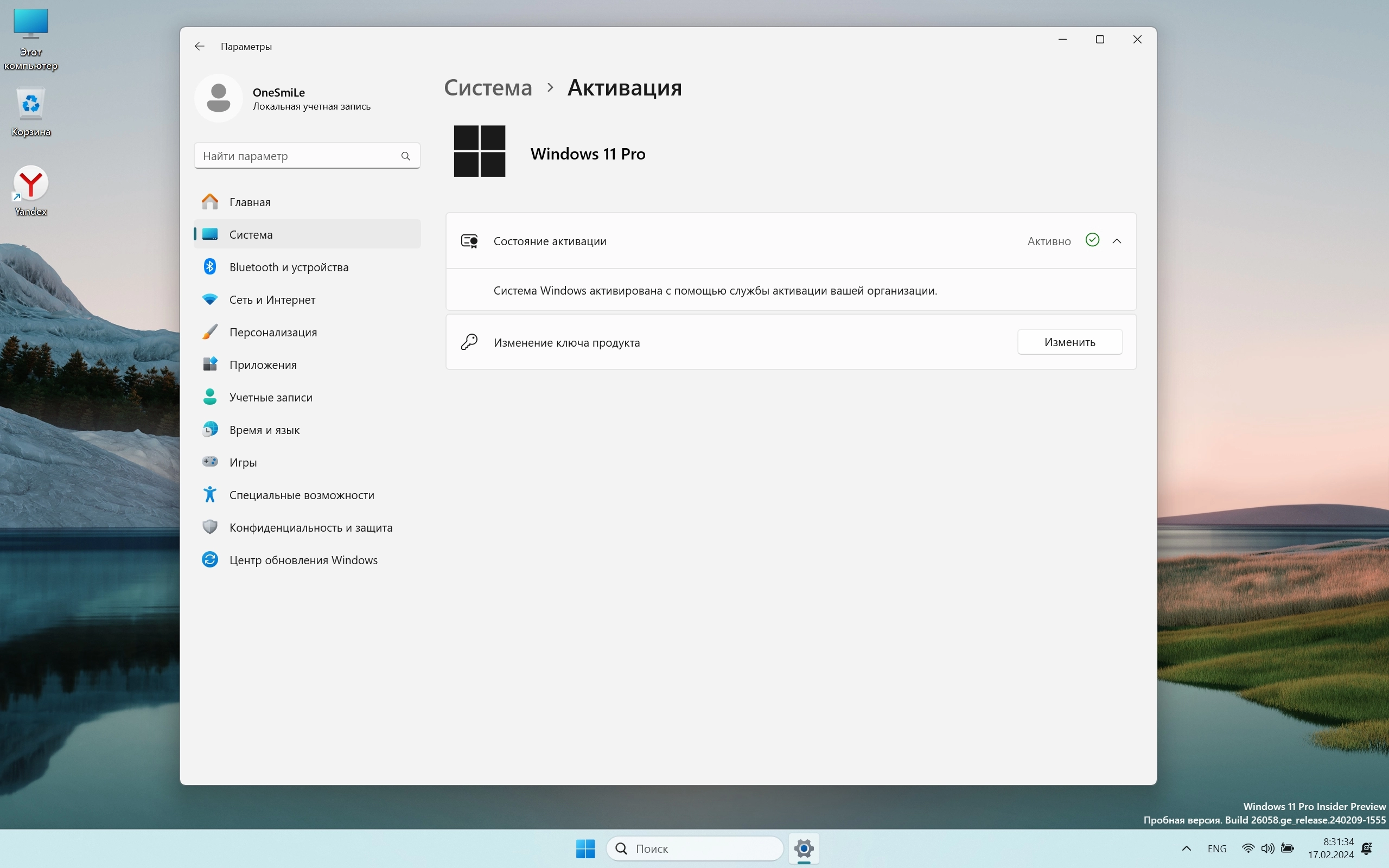 Windows 11 24H2 x64 Русская, версия 26058.1100 от OneSmiLe, предназначена для инсайдеров с обновлениями к февралю 2024 года.