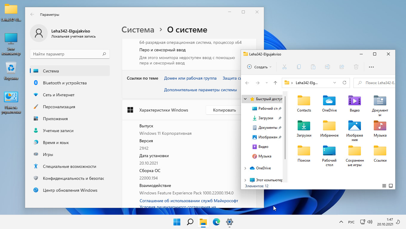 Windows 11 3in1 VL (x64) v.10.10.21 Elgujakviso Edition торрент, изменения: