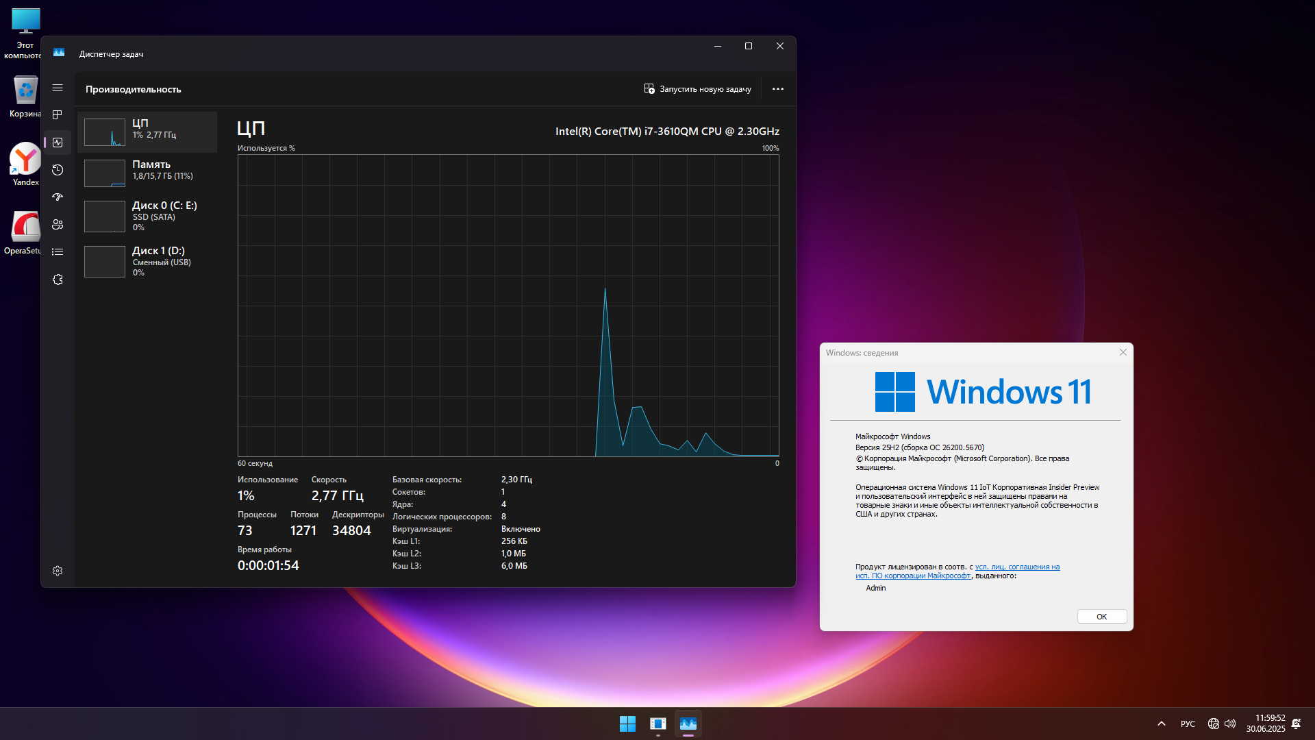 При установке версии 25H2 Build 26200.5670 Windows 11, исключены телеметрия, лишние службы и приложения, защитник, а также все необходимые функции для полноценного использования системы.