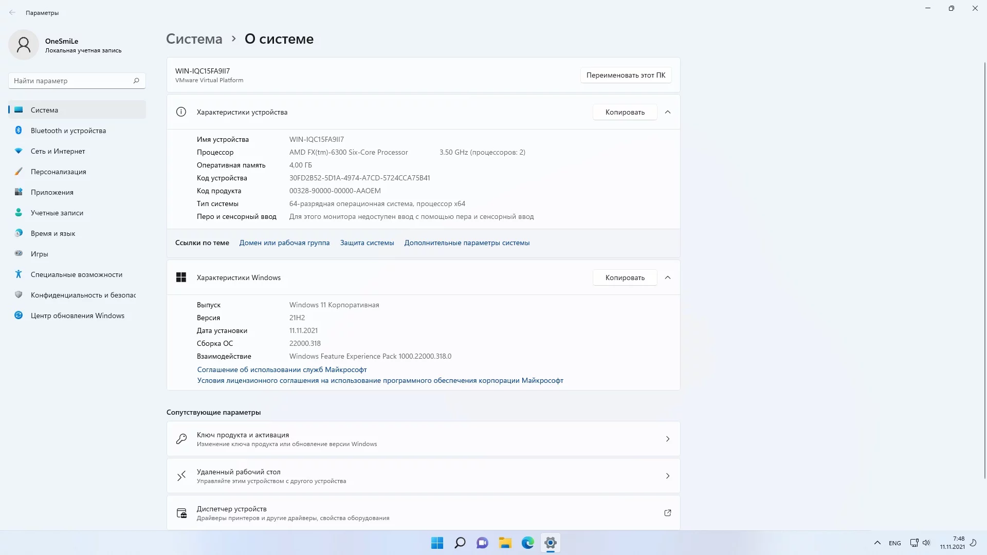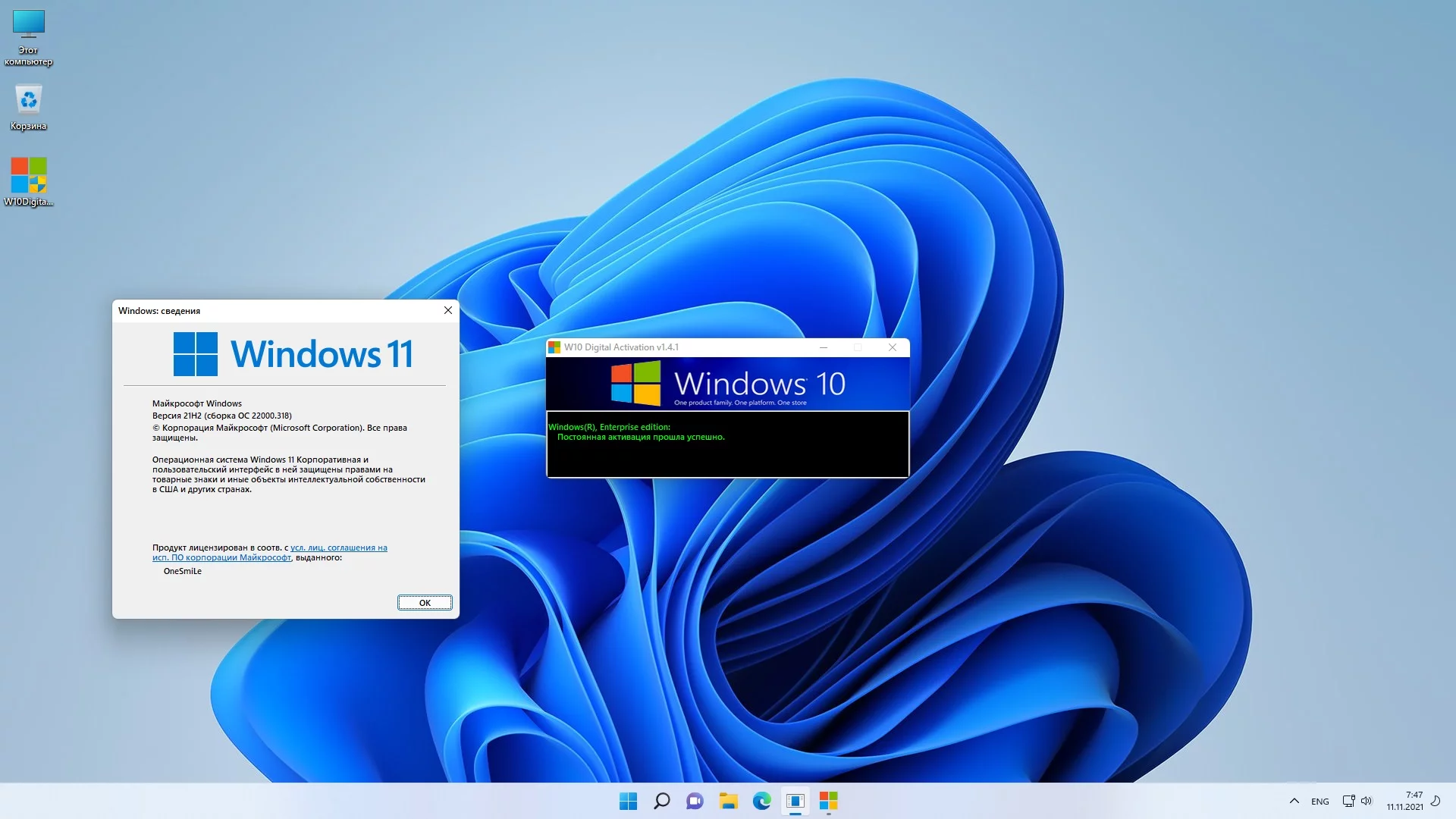 Windows 11 Enterprise 21H2 x64 Rus by OneSmiLe [22000.318]