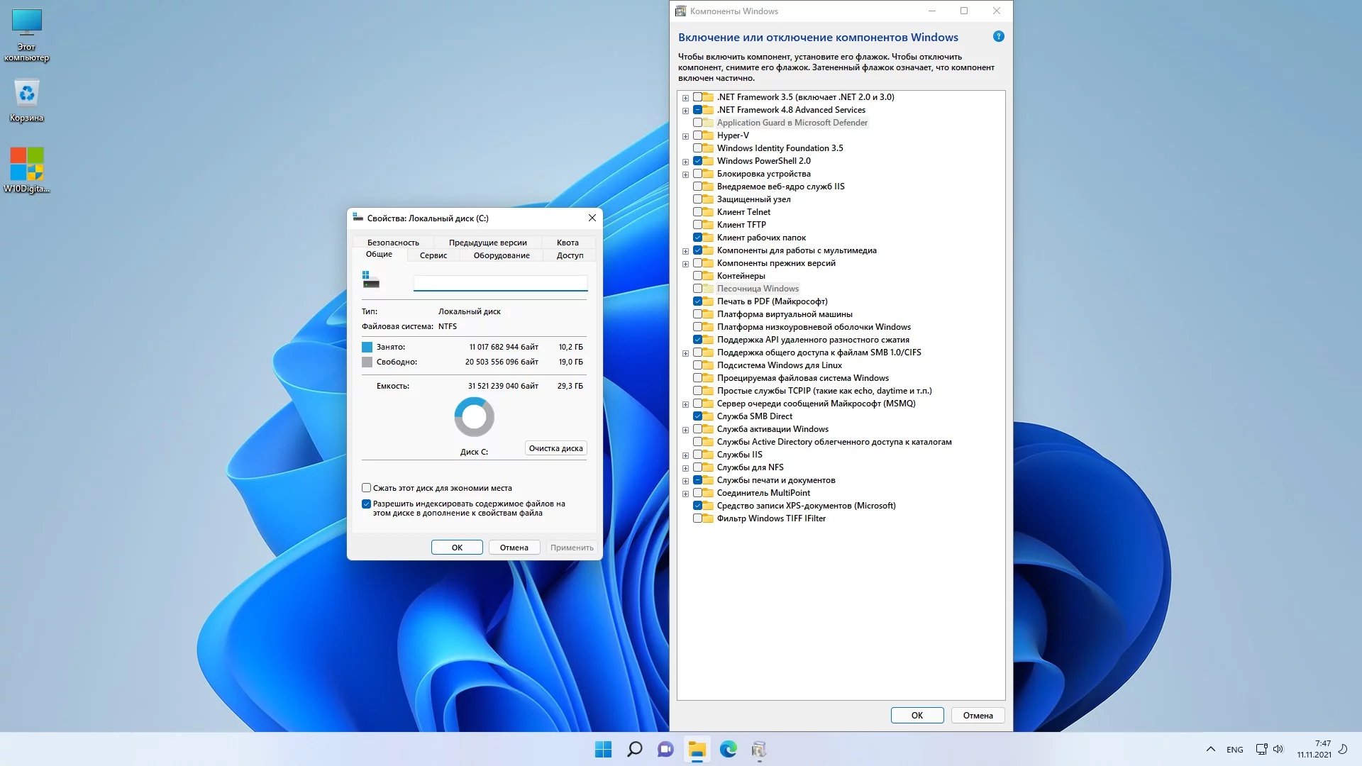 Windows 11 Enterprise 21H2 x64 Rus (версия 22000.318) — система без модерн приложений, с отключенным Windows Defender и смешанным драйвером в WinSxS, а также установленным .NET Framework версией выше 3,5.
