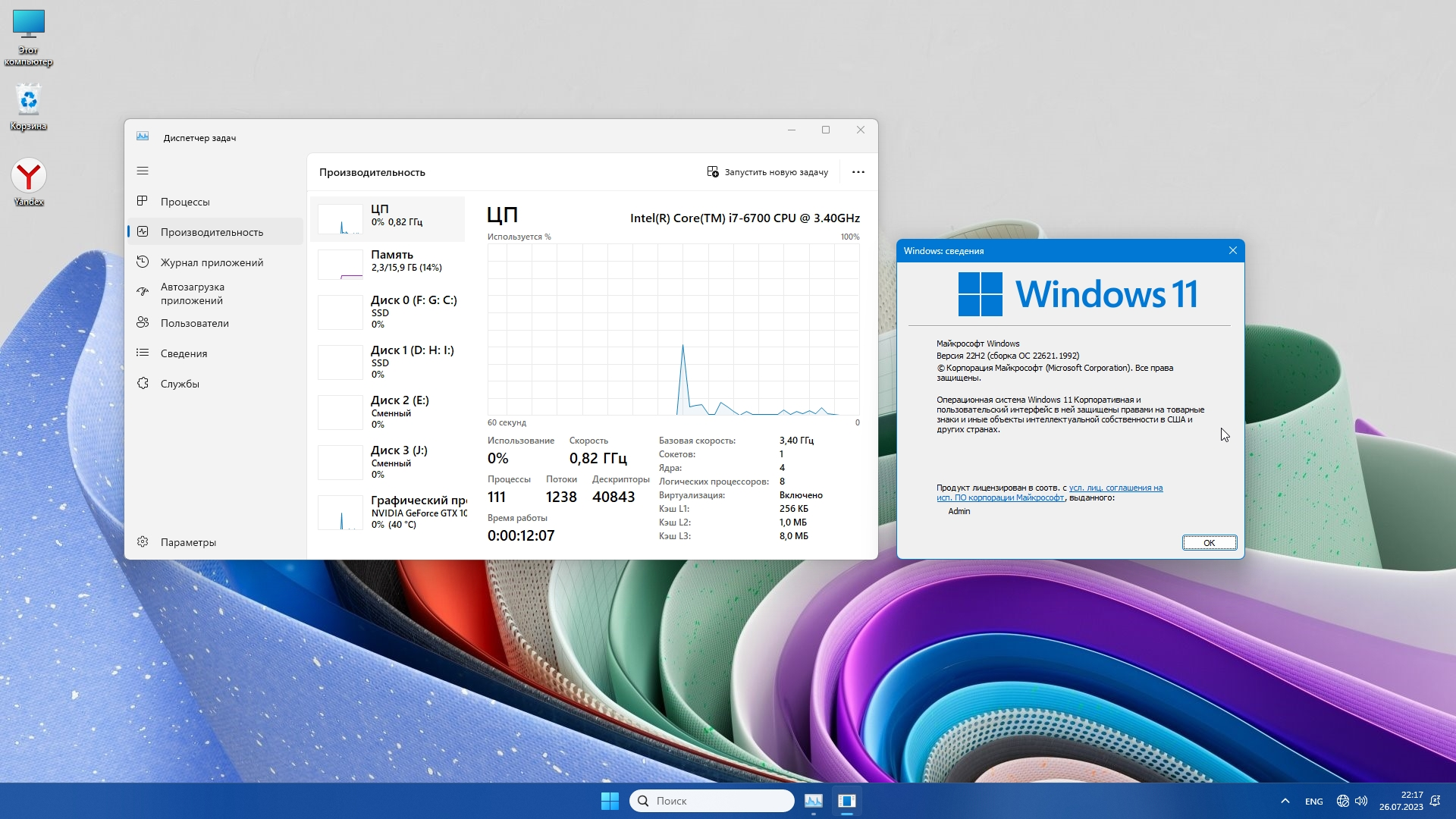 Версия 22H2, обновленная в июне 2023 года. Настройка производилась без использования режима аудита, что обеспечило стабильность и быстродействие.