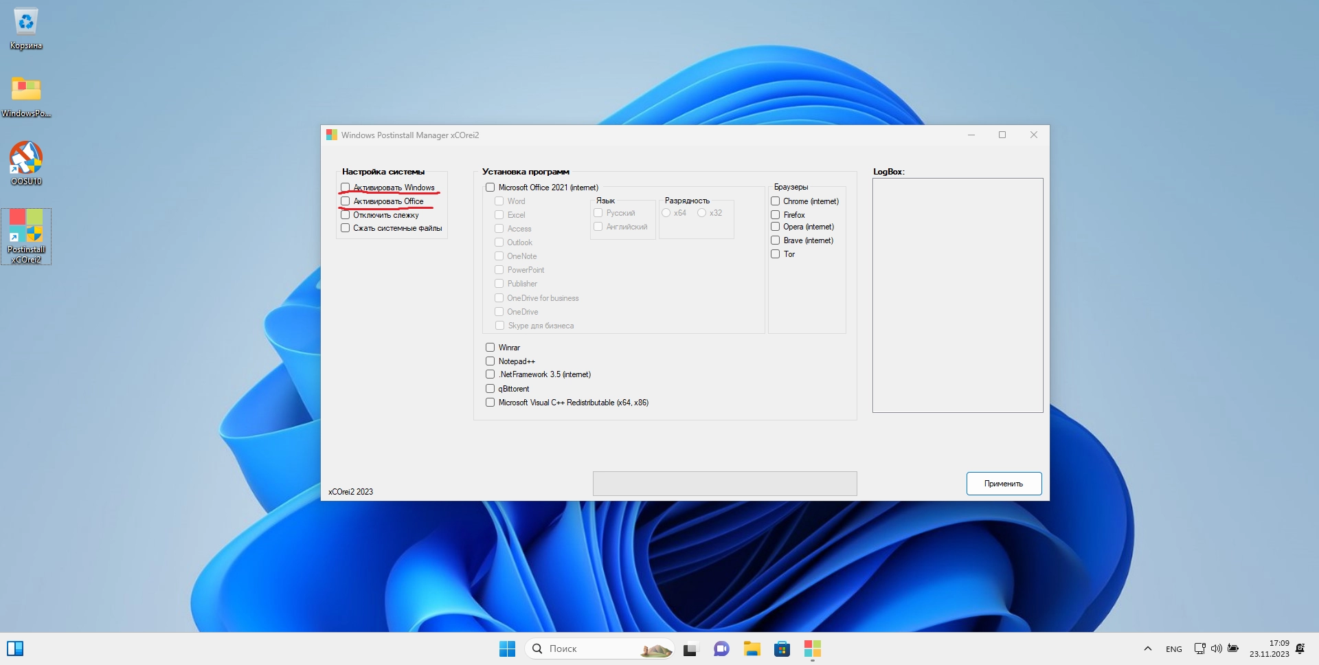Windows 11 Enterprise 23H2 x64 by xCOrei2 [22.11.2023] Особые версии: Оптимизация: Оптимальные обновления, утилиты и приложения для более эффективной работы. Установка: Простая настройка с помощью "Windows Postinstall Manager xCOrei2". Облачное трафик: