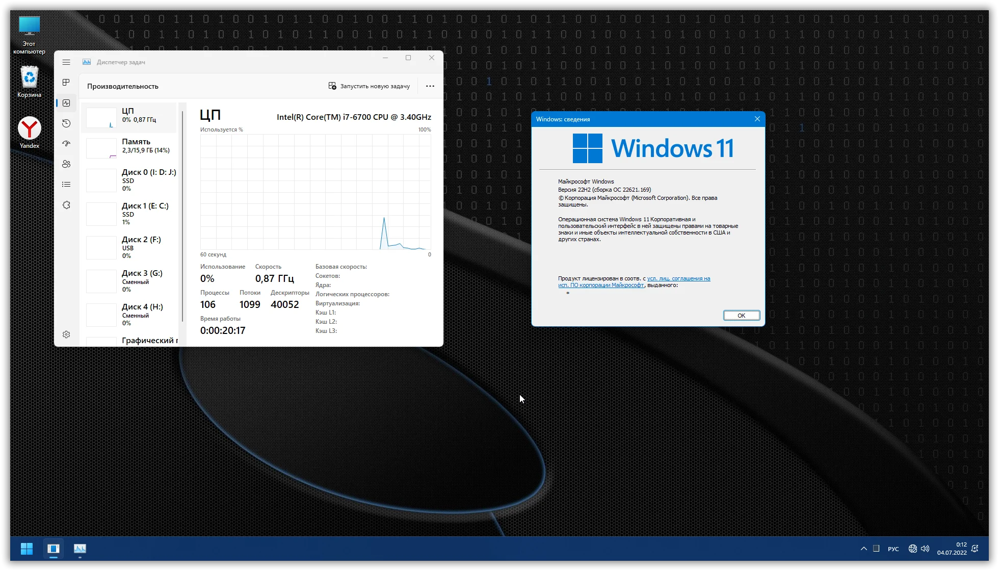Windows 11 Enterprise Lite x64 + VPN Полностью автоматизированная установка с выбором только раздела диска. Системные требования: Процессор (не менее двух ядер с тактовой частотой не менее 1 ГГц или SoC) ОЗУ 4 гб Место на диске 20 ГБ или больше