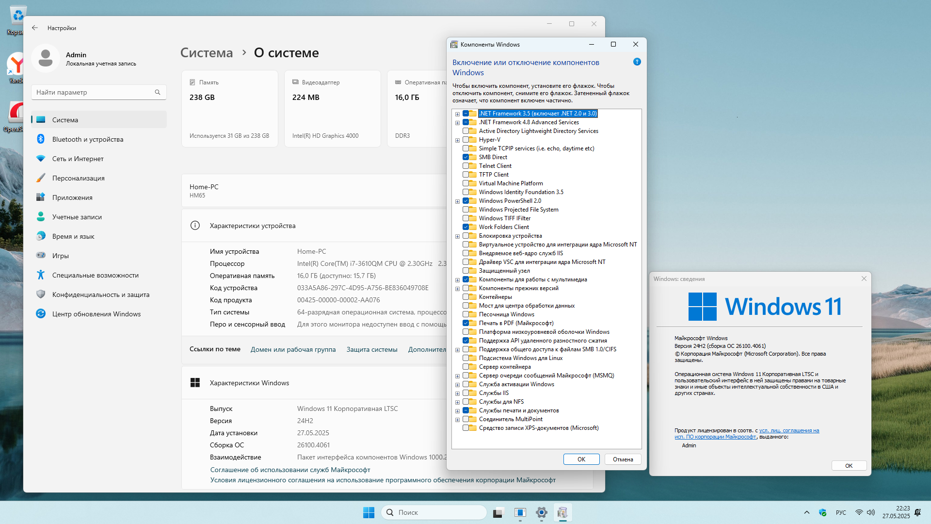 Windows 11 Enterprise LTSC 24H2 Build 26100.4061, изначально созданный образ с обновлениями до Май 2025 года, предназначен для пользователя, преданного легкости и стабильности благодаря лауреату наград по LTSC версии. Наш компьютер на процессоре не менее двух ядер (1 ГГц или выше), с установленной ОЗУ 4 ГБ и отформатированным дисковым пространством от 20 ГБ.