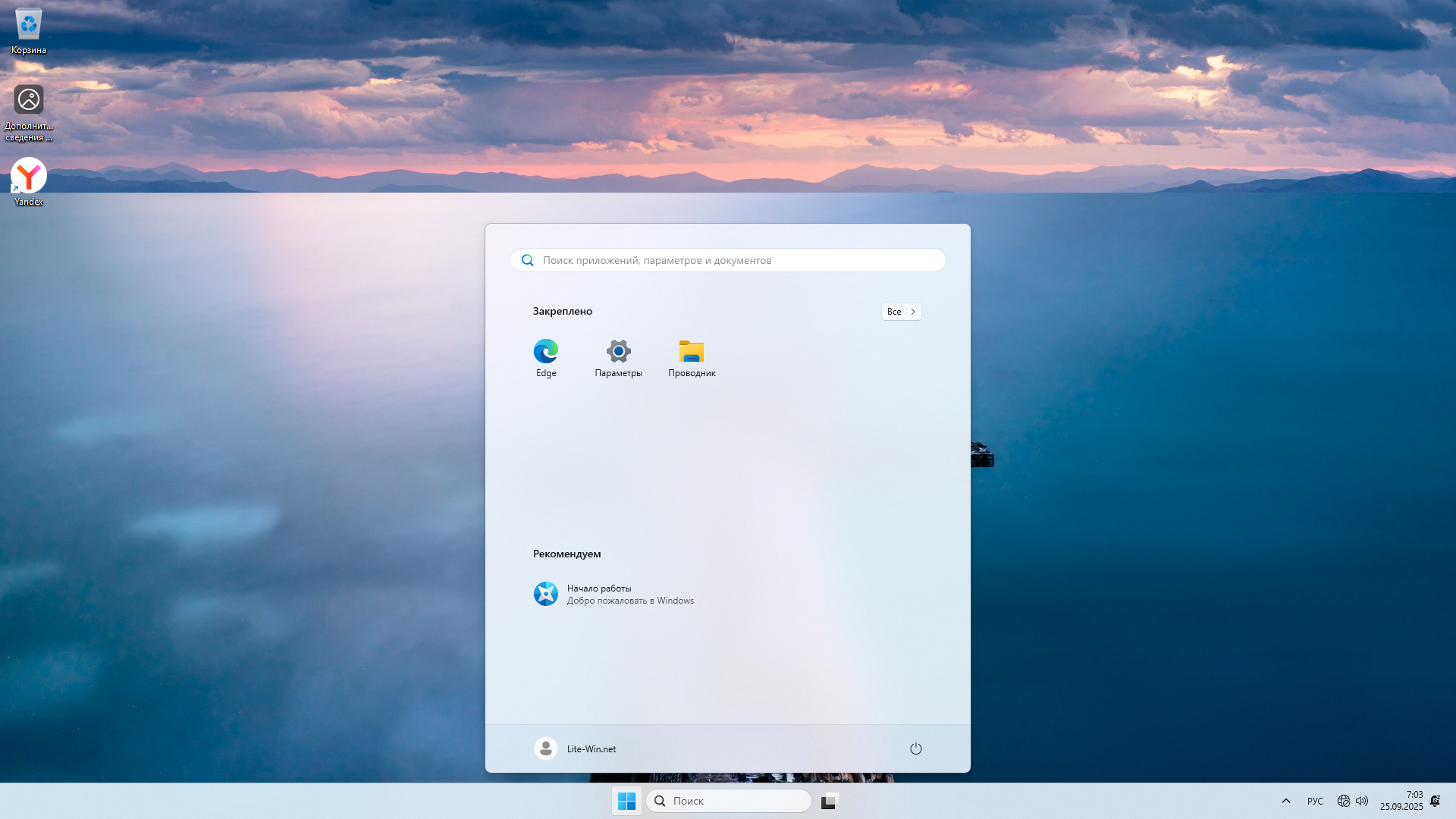 Легкий и стабильный образ Windows 11 с обновлениями до сентября 2025 года, не имеющий предустановленных приложений.