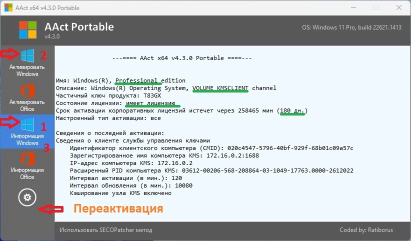 3. Запускаем файл "KMSAuto" из папки KMSAutoLite или AAct_x64 из AAct Portable.