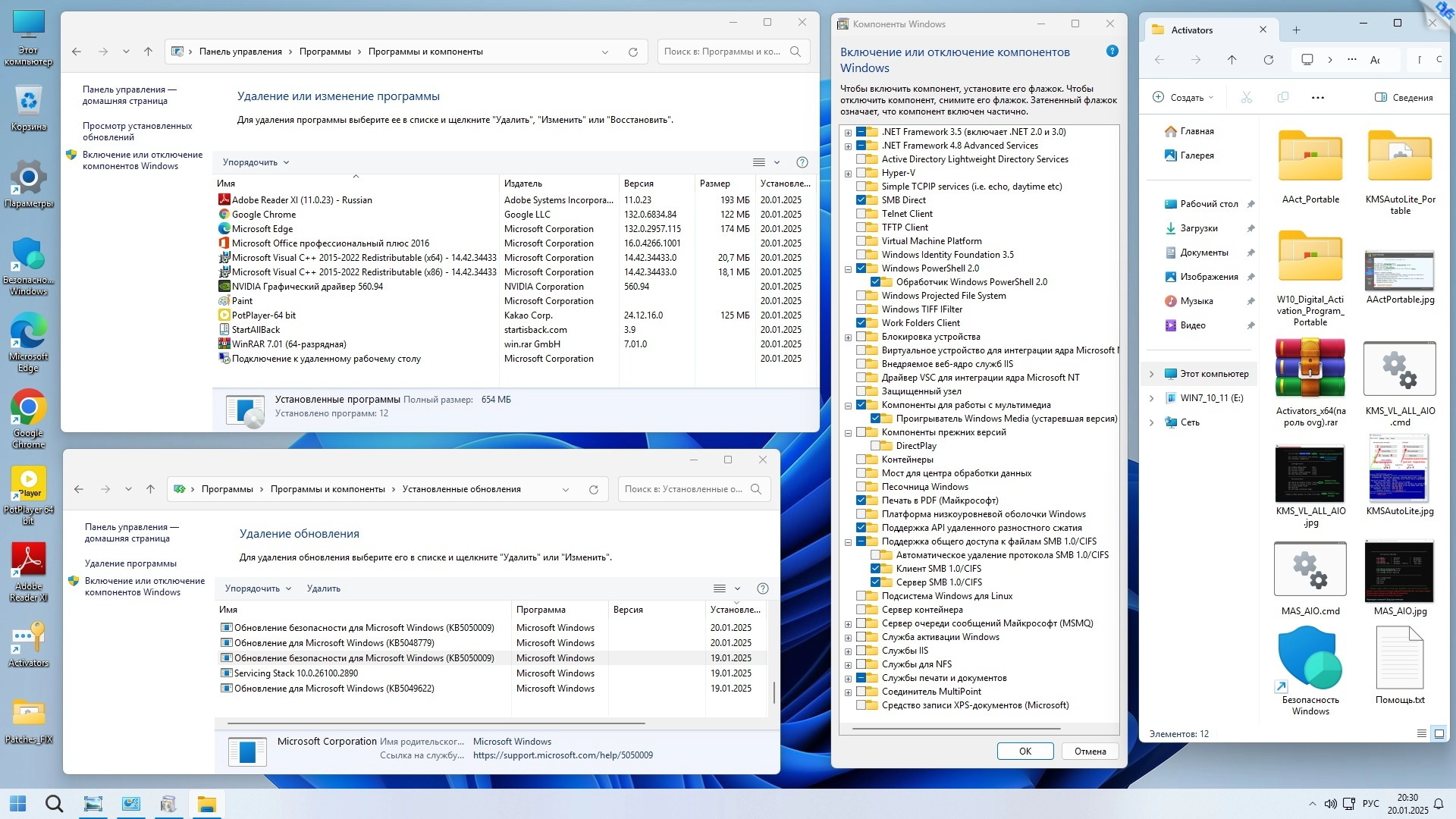 - накопительные обновления ОС по 15 января 2025 г;.
