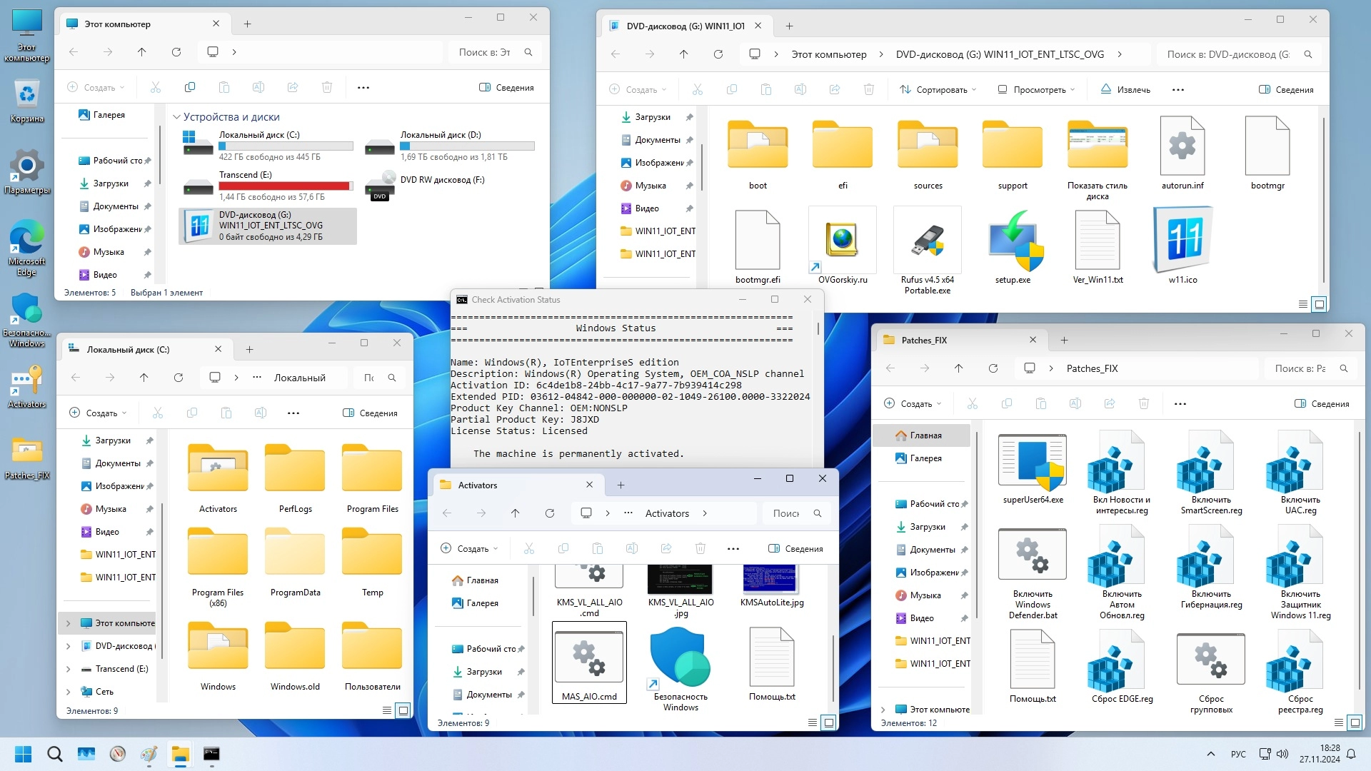 Сборка на основе оригинального образа Windows 11 Enterprise LTSC с дополнительным материалом в 1-м установочном образе. Компьютер для системы: • Процессор: Современный двухъядерный процессор x64 (amd64) с частотой 1 ГГц или выше; • ОЗУ: 2 ГБ рекомендуется 8 ГБ и более; • Место на жестком диске: 16 ГБ рекомендуется SSD 64 ГБ и более; • Видеокарта: DirectX 10 или более поздней версии с драйвером WDDM 2.0 без ограничений на безопасность, UEFI, модуль TPM 2.0; • Безопасность: не ограничено; • Дисплей: 1366x768 точек. Windows 11 IoT Enterprise LTSC 2024 24H2 x64 Русская торрент • Интегрированы: накопительные обновления и небольшой набор приложений. Благодаря сборке, вам не придется бороться с лишними приложениями или ограничениями на безопасность, что делает систему максимально надежной. Windows 11 IoT LTSC — это функционально оптимизированная редакция корпоративной линейки Windows 11 от Microsoft. Это специальная редакция Enterprise с долгосрочным сроком поддержки для устройств и Интернета вещей (IoT). LTSC расшифровывается как Long-Term Servicing Channel, «Канал долгосрочного обслуживания». Редакция LTSC предназначена для работы на компьютерах и устройствах, где важна стабильность работы машин и не нужно функциональные обновления. Долгосрочная поддержка для IoT LTSC 2024 заявлено на срок в 10 лет. Чем данная редакция отличается от других? Windows 11 IoT Enterprise LTSC 2024 24H2 x64 Русская • Более низкие системы требования, нет необходимости по UEFI и модулю TPM 2.0, больше лояльных требования к видеокарте. • У IoT редакции более длительный срок поддержки| Version | v24H2 |