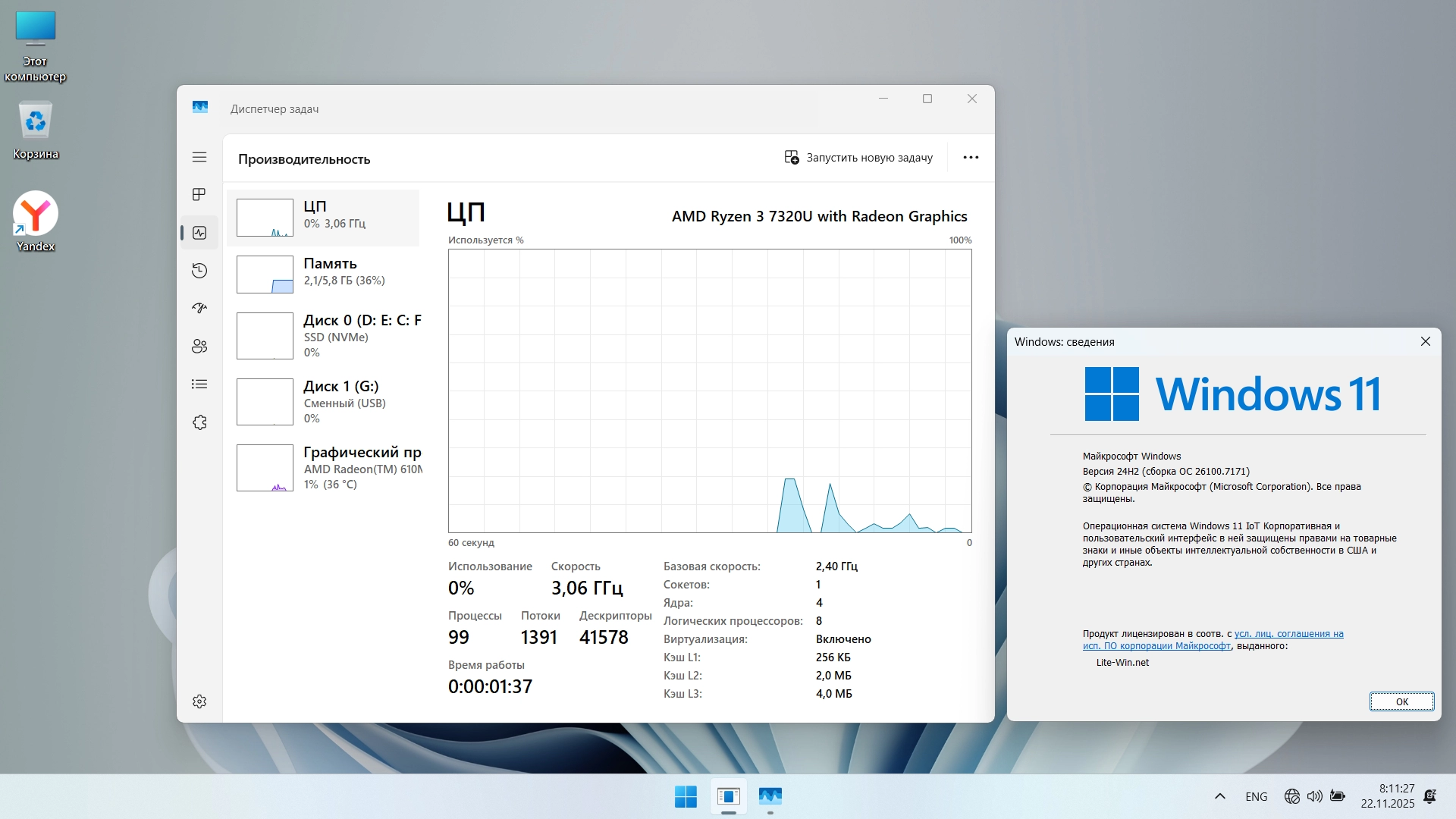 Сборка Windows 11 корпоративной версии без приложений и служб, обеспечивающих контроль пользователя.