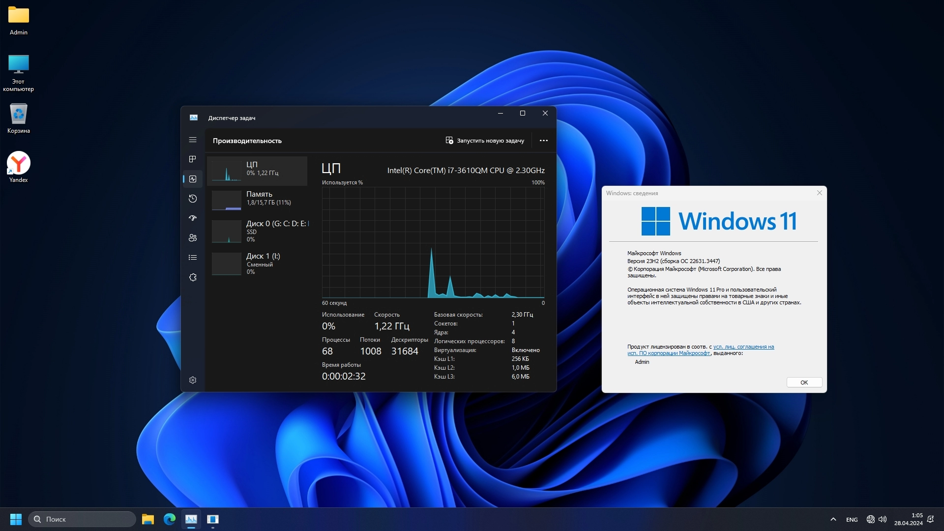 - Сборка Windows 11, выпущенная в апреле 2024 года с оптимальными настройками.