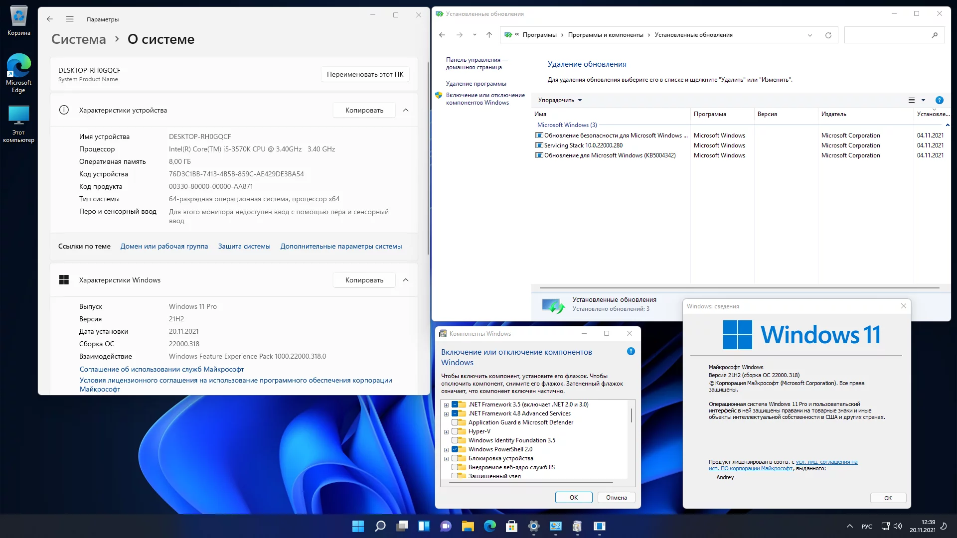 Версия системы: Windows 11 Pro 21H2, x64