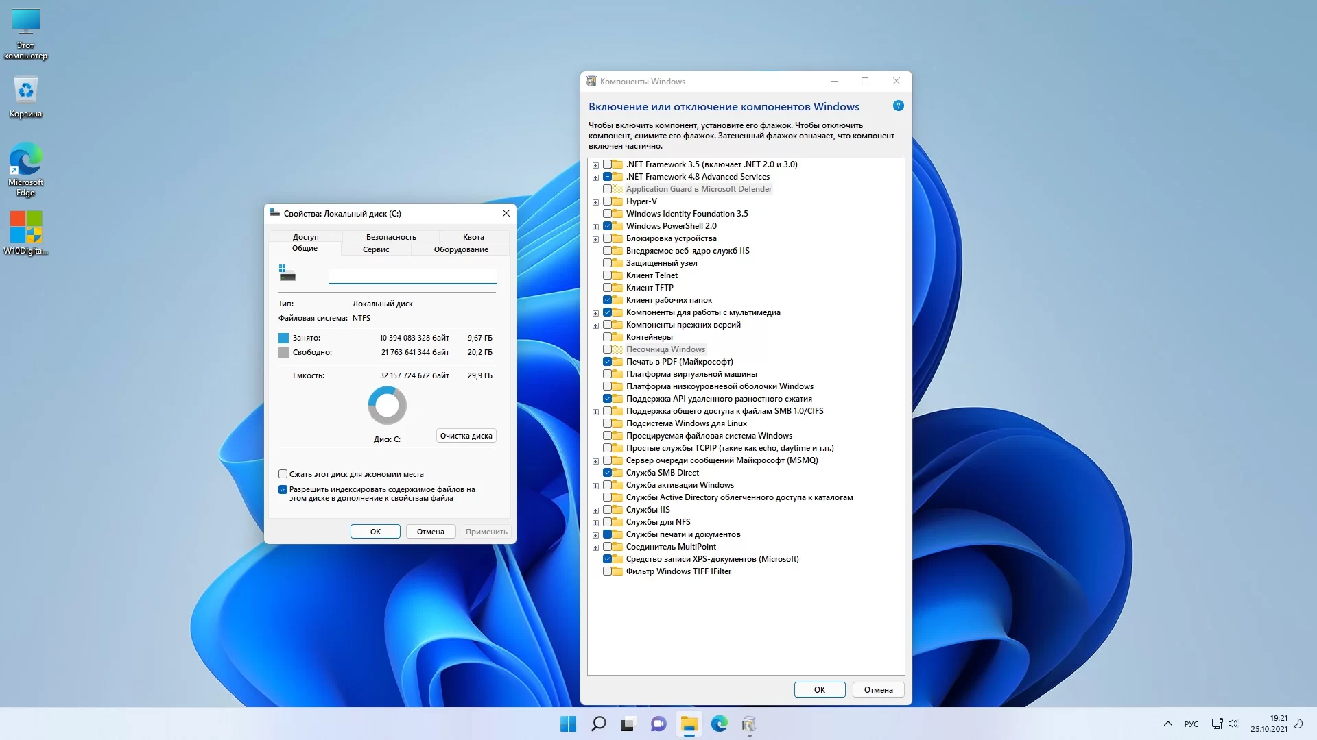 Версия системы: Windows 11 PRO 21H2 x64 Rus Сборка сделана из оригинального образа ru-ru_windows_11_business_editions_version_21h2_updated_october_2021_x64_dvd_aeafe964 Удалены все модерн приложения, кроме Edge Поиск работает (значок скрыт) Телеметрия