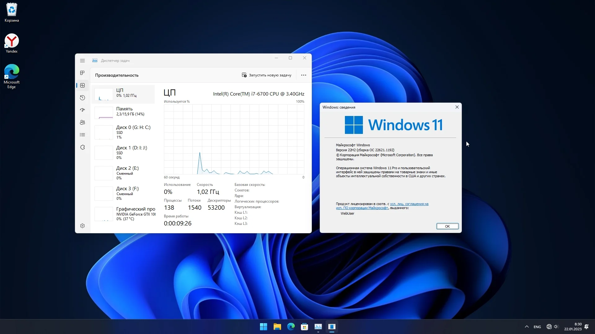 Windows 11 Pro 22H2 22621.1192 обновлена русская сборка с минимальными изменениями.