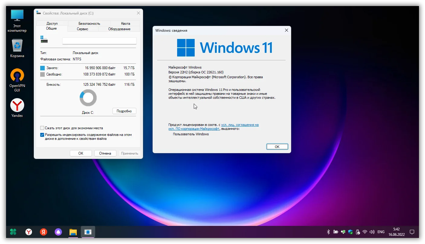 Скриншоты Windows 11 Pro 22621.160 + OpenVPN Русская by WebUser v2 торрент: