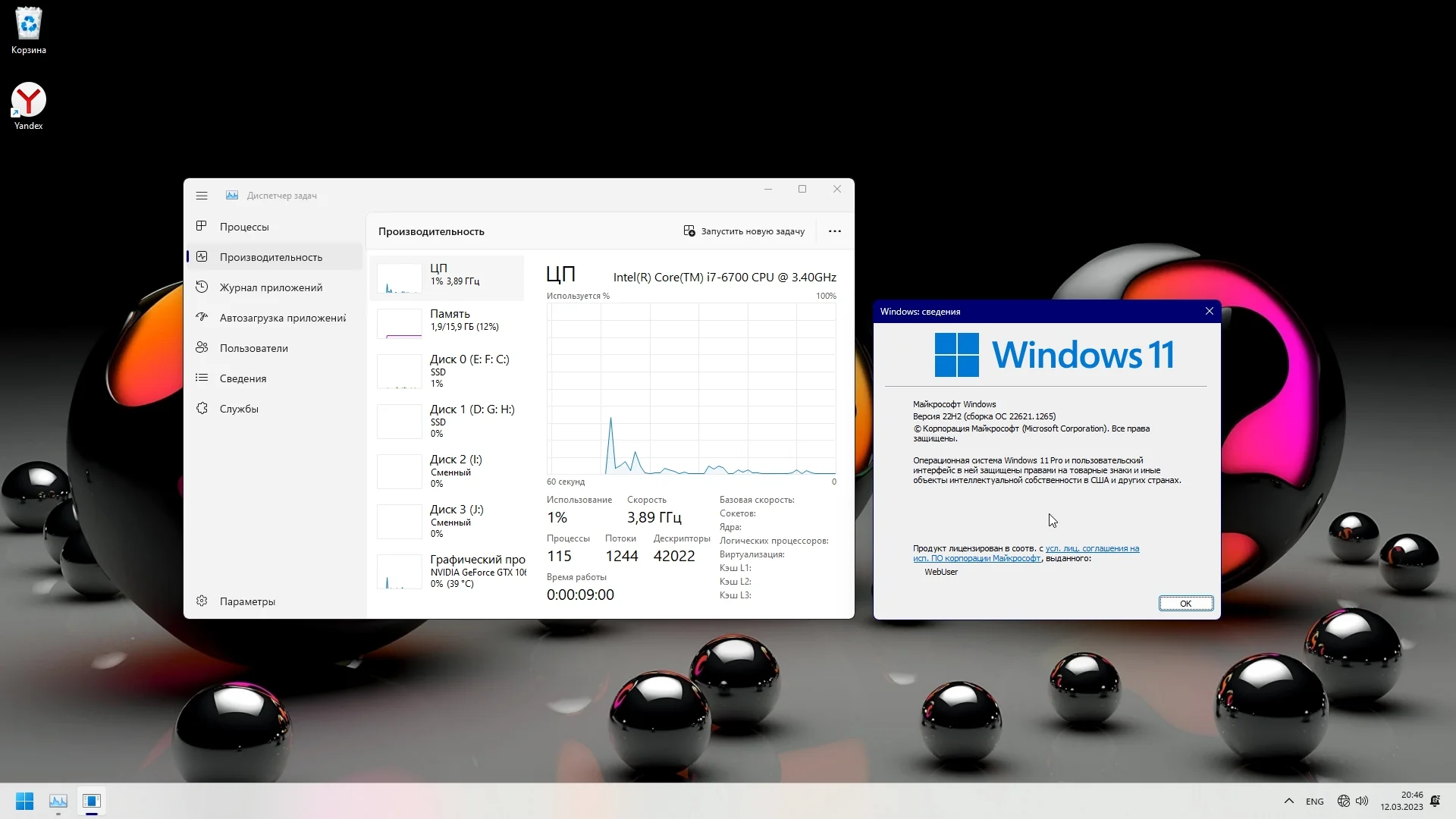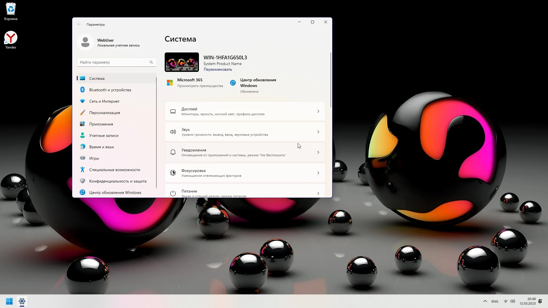 Стабильная сборка Windows 11 Pro 22H2 22621.1265 (WebUser) без всех системных требований и несовместимых с обновлениями.
