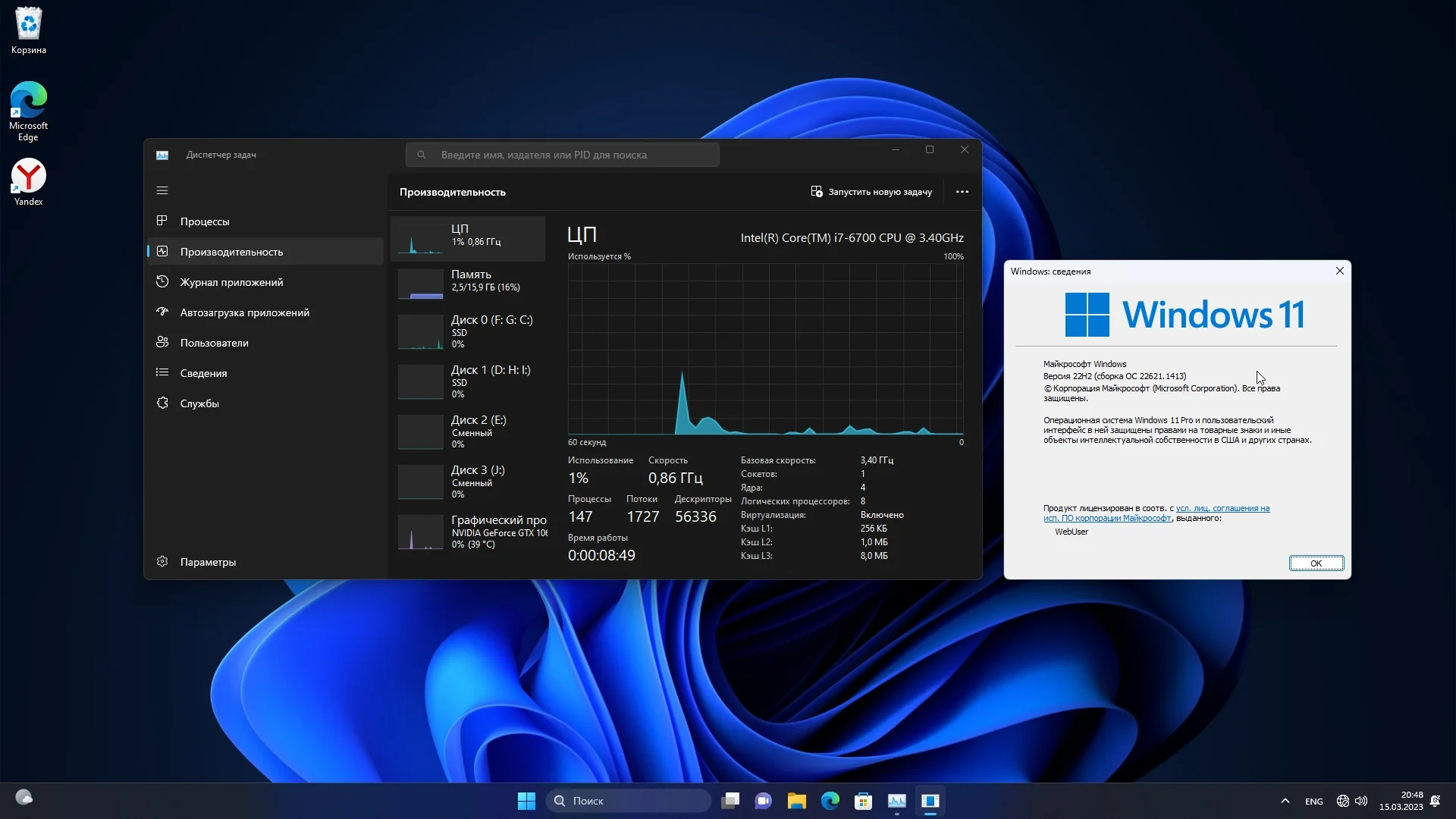 Версия: Windows 11 Professional Edition Build 22621.1413 (March 2023)