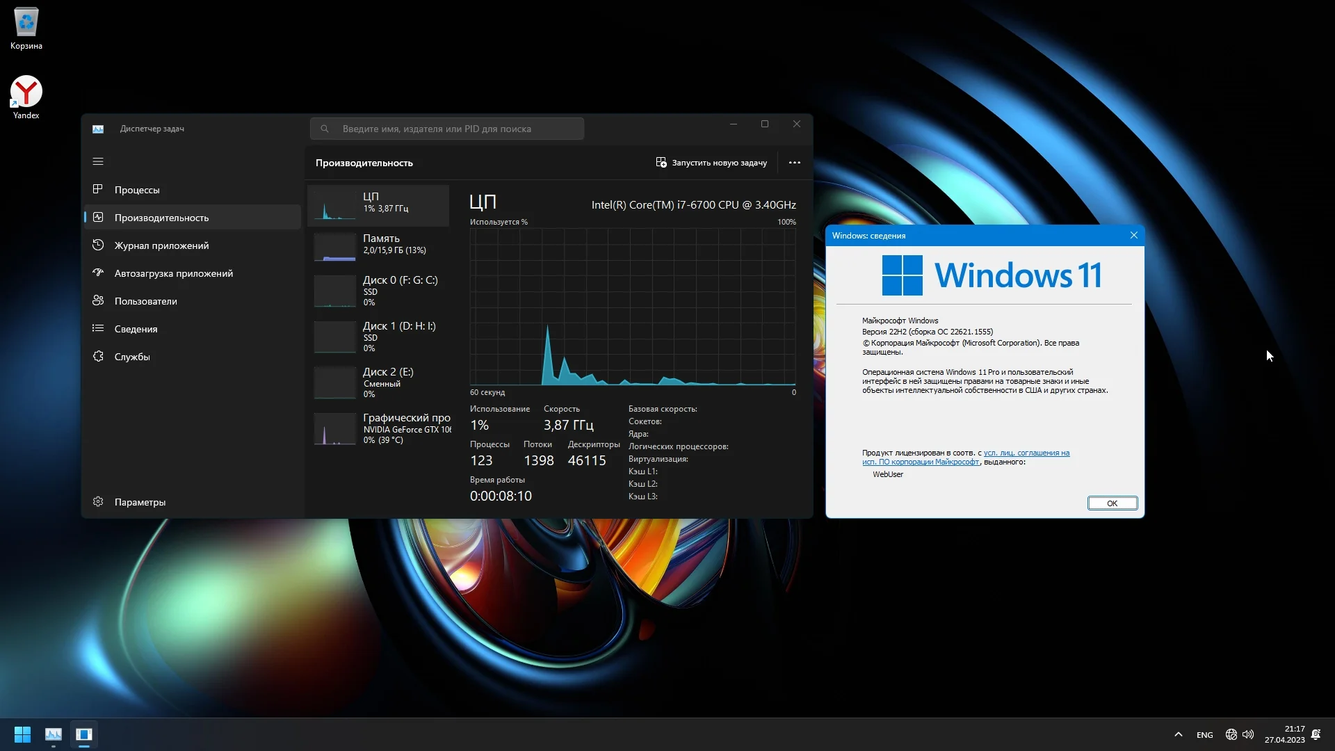 Windows 11 Pro 22H2_22621.1555 Stable построен на билде апреля 2023 года, полностью отключена телеметрия и защитник Windows, а также удалены метро приложения. Компьютер для установки: не менее двух ядер с частотой более 1 ГГц или SoC ОЗУ 4 ГБ, место на диске 20 ГБ или больше. Видеоадаптер DirectX 12 и выше версии с WDDM 2.0. Процессор: не менее двух ядер с частотой более 1 ГГц или SoC ОЗУ 4 ГБ, место на диске 20 ГБ или больше.