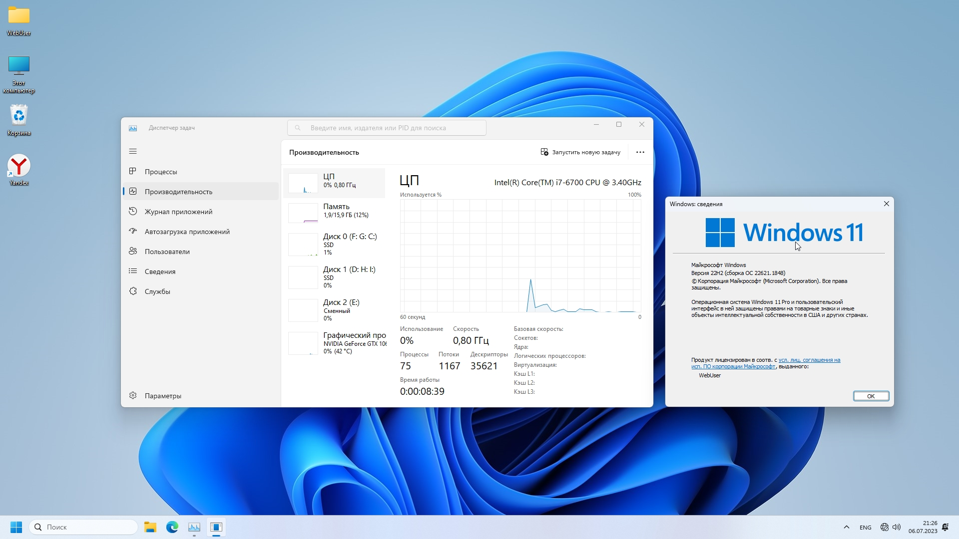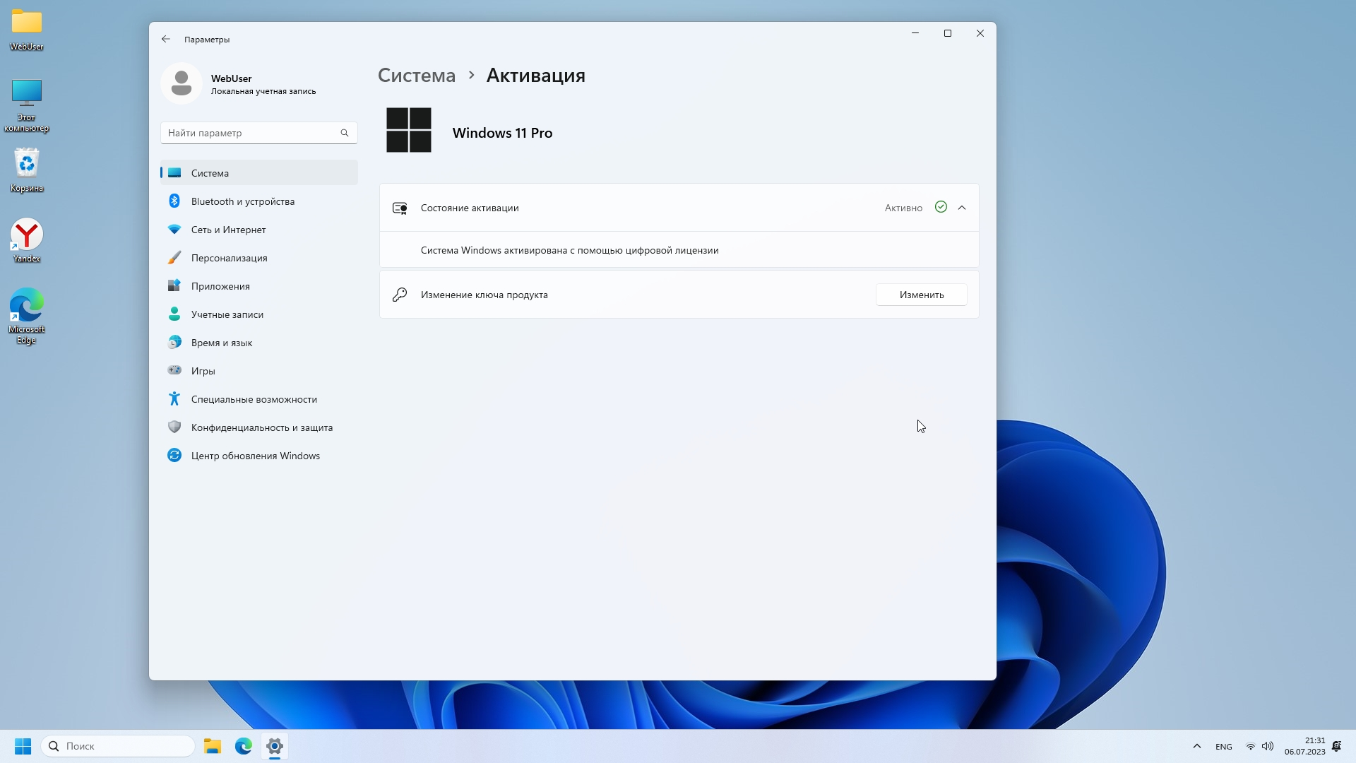 - Установлены обновления Июнь 2023, Net Framework 3.5 (включает Net 2.0 и 3.0), активация, Яндекс браузер