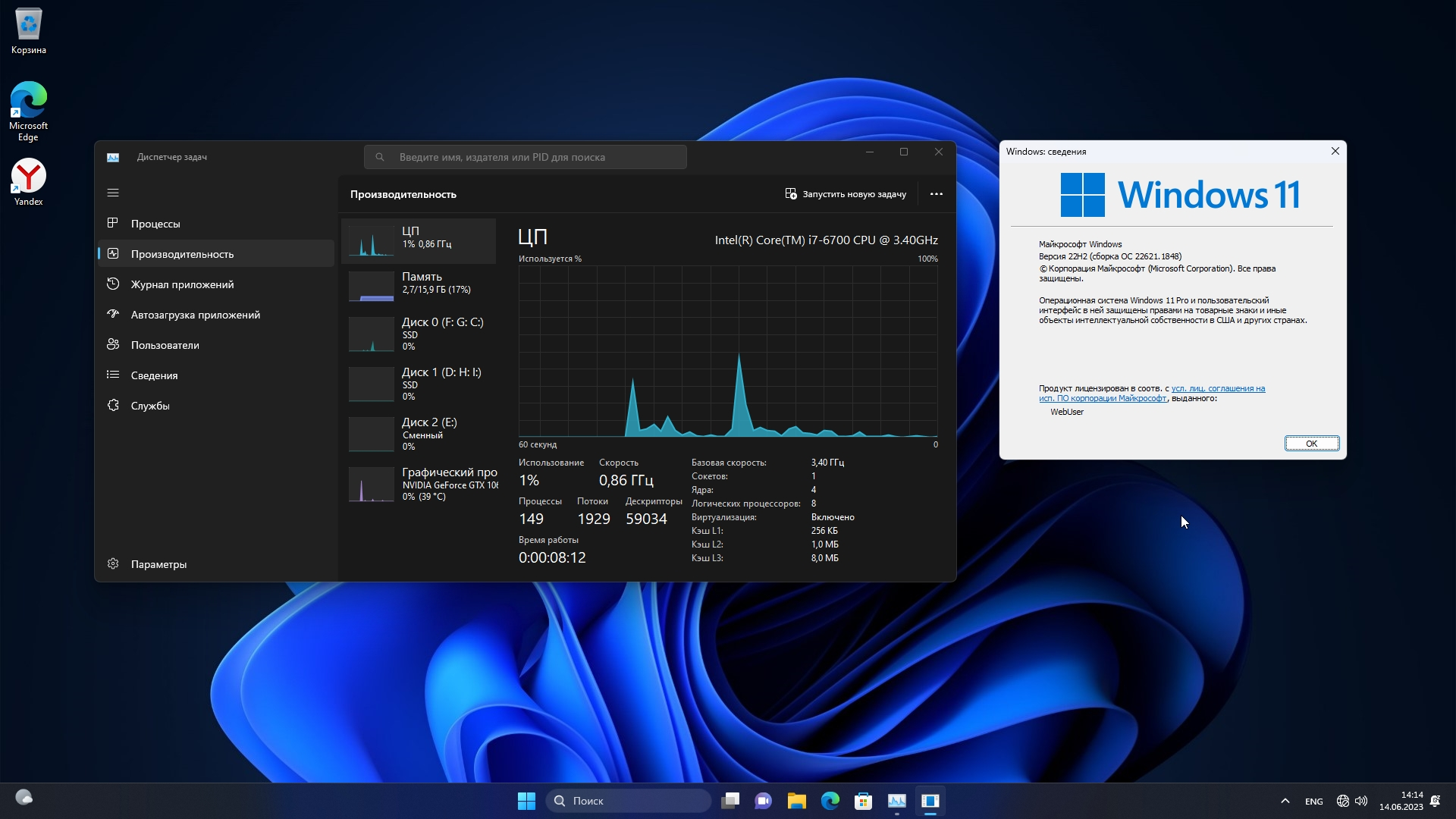 Общее описание продукта: Версия 22H2 Build 22621.1848 с Южно-Американским русским языком для Windows 11 Pro, выпущенная в июне 2023 года. Основная конфигурация компьютера: