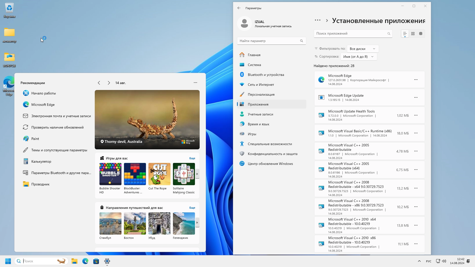 - Удалены все приложения кроме Магазина, Калькулятор, Блокнот, Paint.