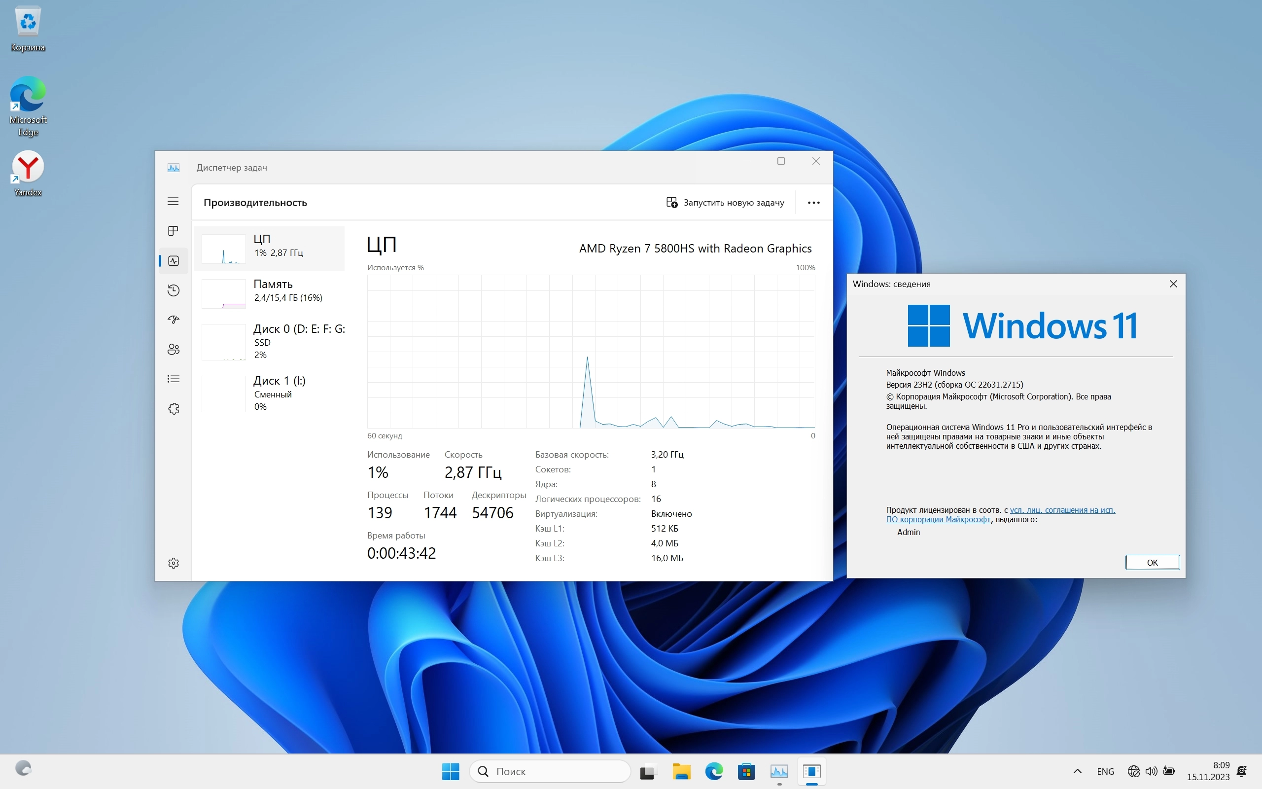 Windows 11 Pro 23H2, версия 22631.2715, обновленная редакция с интегрированными обновлениями.
