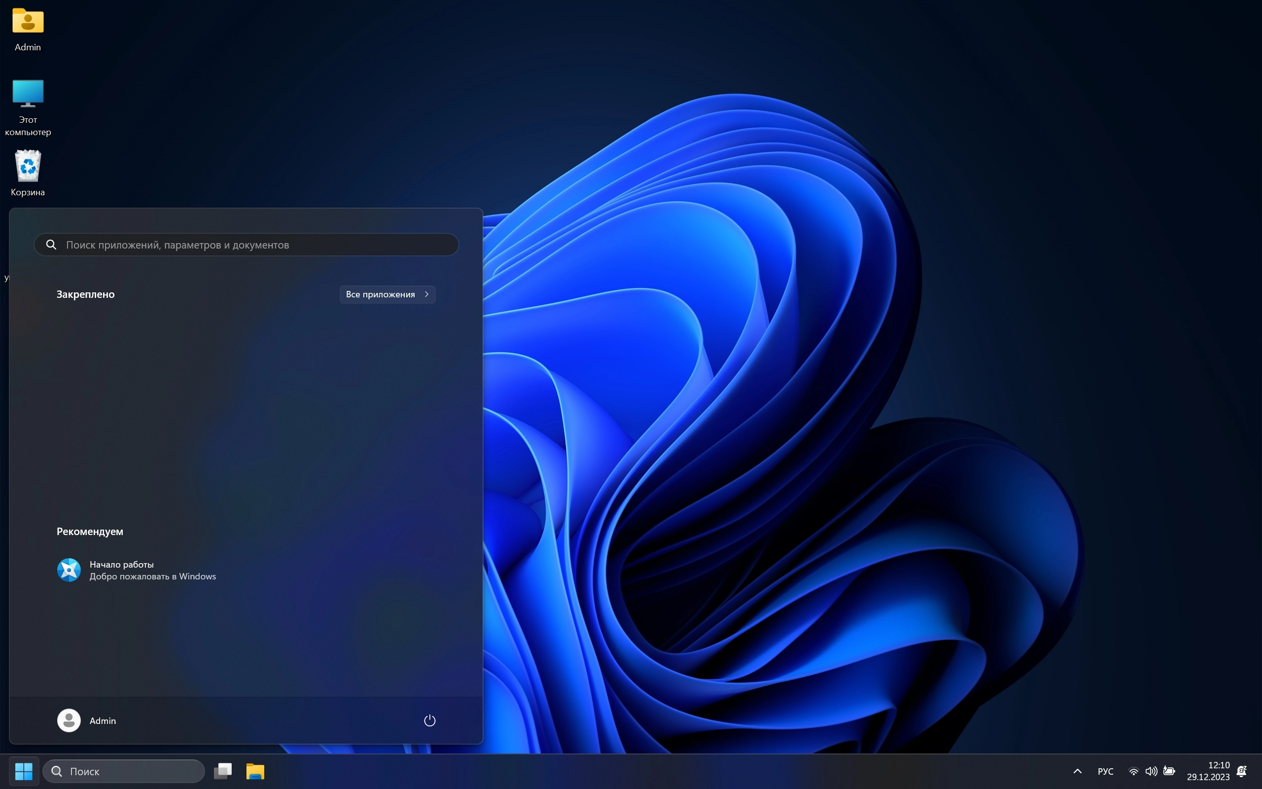 - Удалены плитки: Кортана, BingNews, BingWeather, GetHelp, Getstarted, MicrosoftOfficeHub, WindowsAlarms, WindowsCamera, windowscommunicationsapps, WindowsFeedbackHub, MicrosoftSolitaireCollection, MicrosoftStickyNotes, People, SecHealthUI, ZuneMusic, ZuneVideo, QuickAssist, Terminal, Clipchamp.