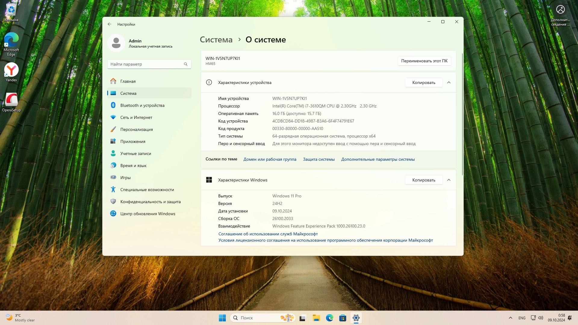 Исходный текст: Версия 24H2 Build 26100.2033, Windows 11 Pro, версия 24H2, с обновлениями и патчами безопасности по Октябрь 2024 года.