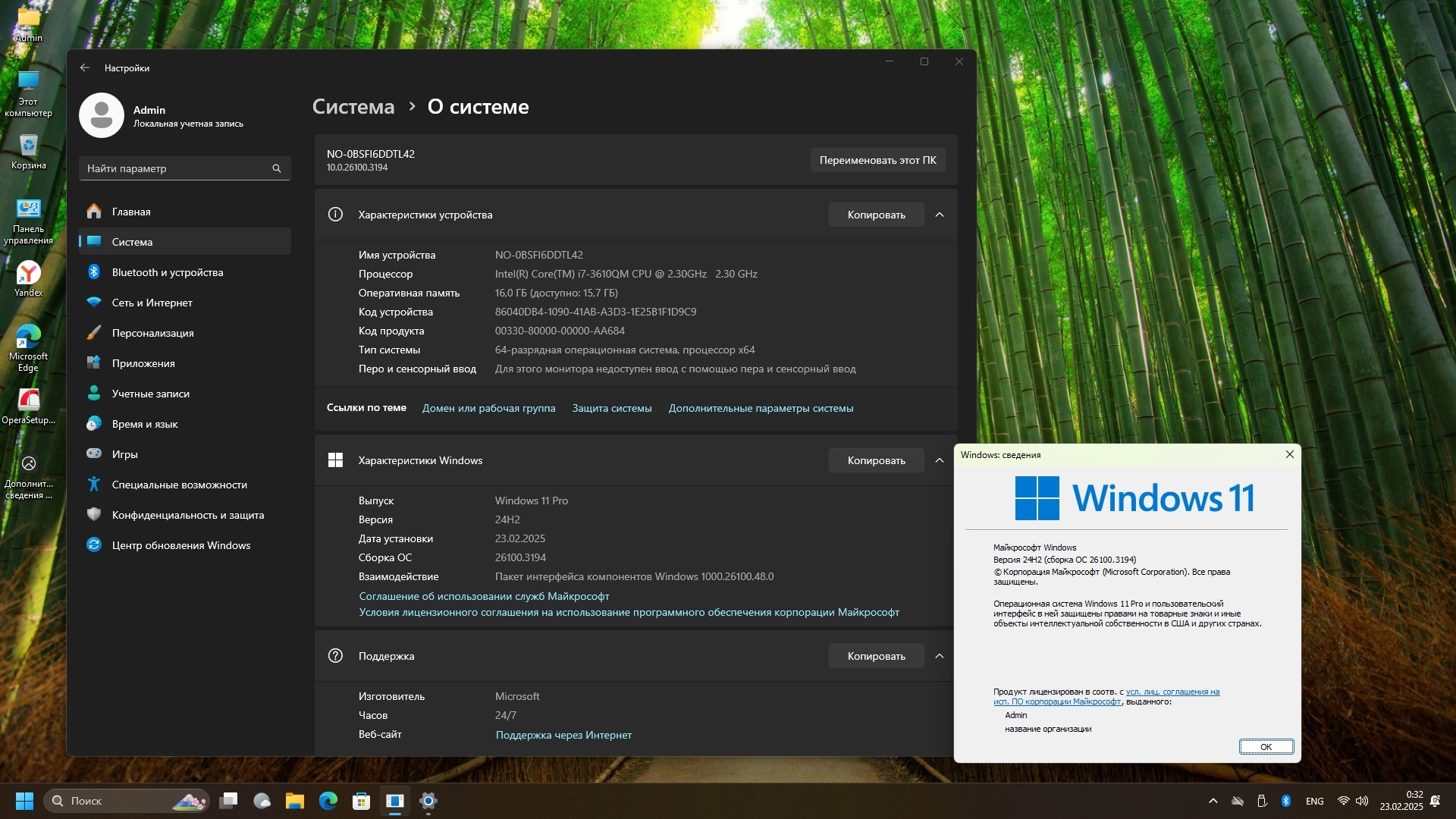 Windows 11 Pro 24H2 Build 26100.3194, полнофункциональная сборка, без Windows Defender и Smartscreen.