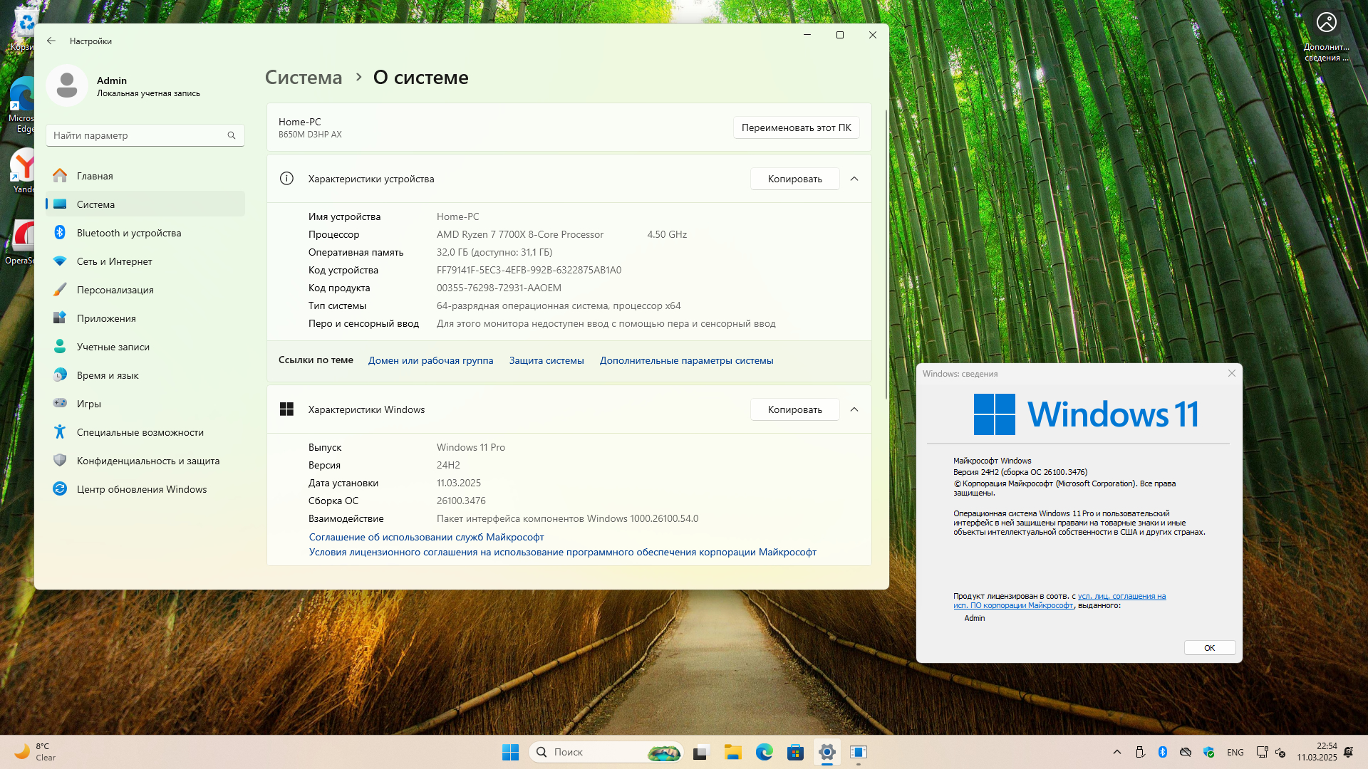 Windows 11 Pro 24H2 Build 26100.3476 Full Март 2025