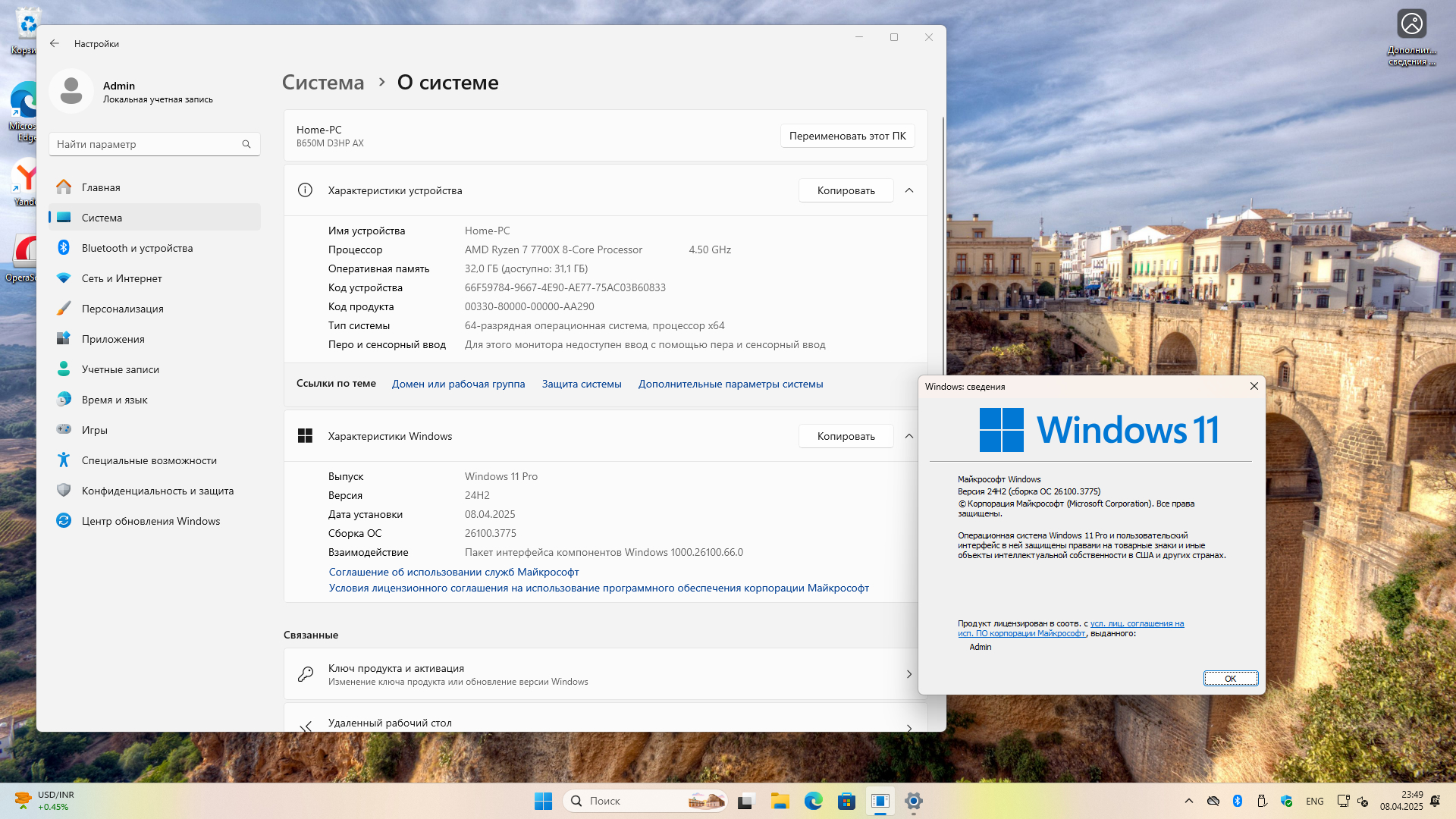 Windows 11 Pro 24H2 Build 26100.3775, Spring 2025 Обновление с обновлениями и патчами безопасности. Пропускные устройства: не менее двух ядер и частота ОЗУ более 1 ГГц. Операционная система полностью установлена по умолчанию. Временный дисплей в