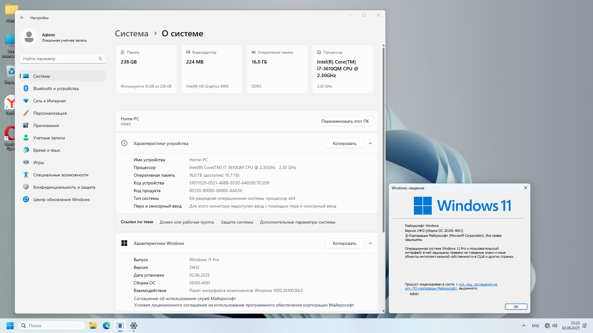Установка Windows 11 Pro 24H2 Build 26100.4061 Optima: