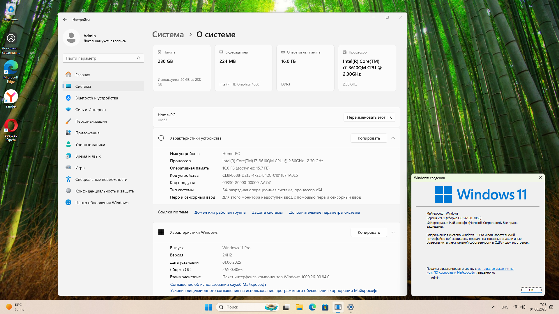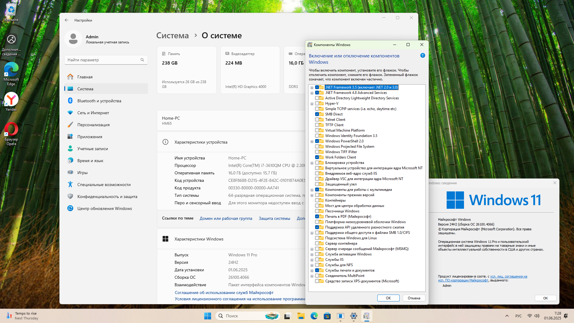 Windows 11 Pro 24H2 Build 26100.4066, Обновление KB5061977 после Вторника патчей (май 2025) для исправления сбоев Hyper-V. Компьютер: Процессор не менее двух ядер, 1 ГГц, SoC ОЗУ 4 ГБ, диск больше 20 ГБ. Видеоадаптер DirectX 12 и выше, экран 720p, диагональ более 9 дюймов, 8 бит цвета.