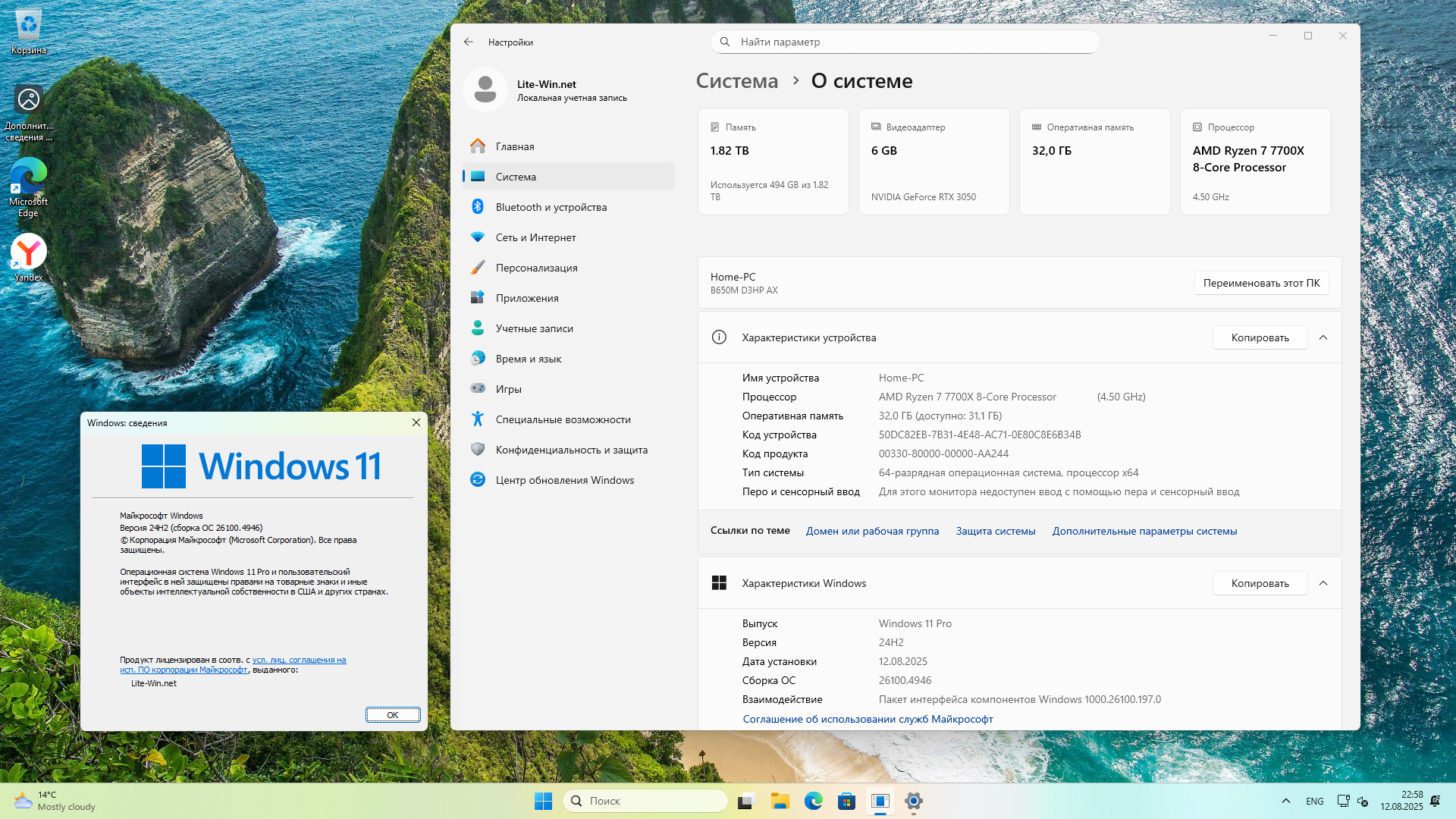 Windows 11 Pro 24H2 Build 26100.4946 Full Август 2025
