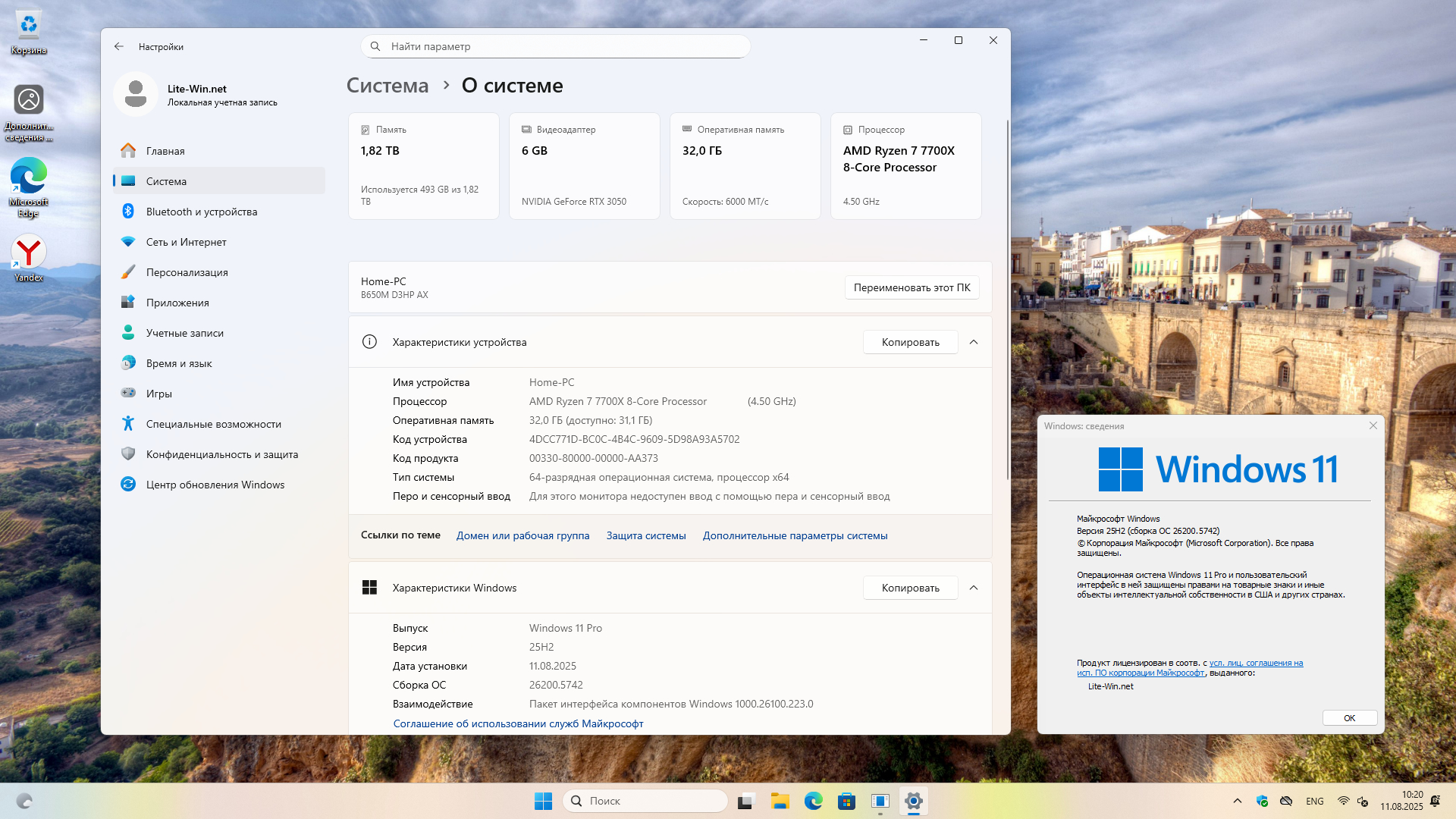 Изображение операционной системы Windows 11 25H2 на основе новейшего билда от 8 августа 2025 года.