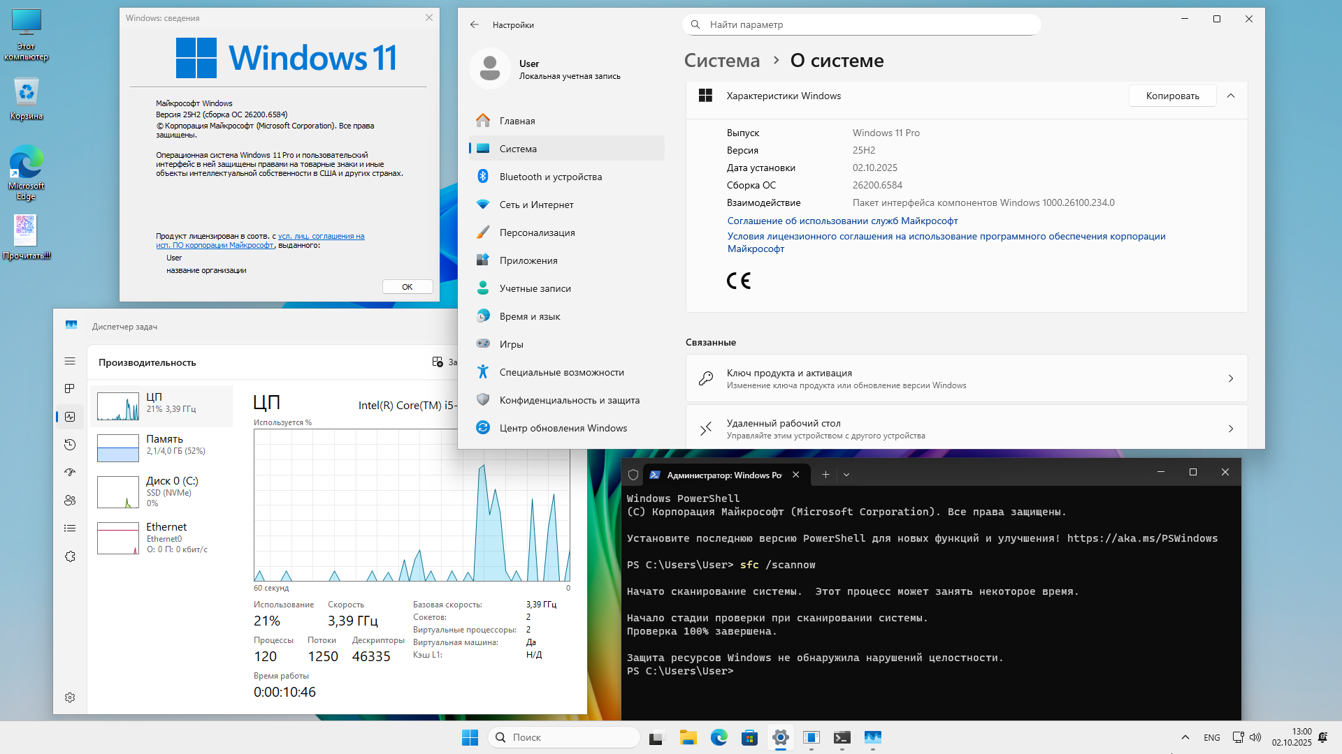 Windows 11 Pro 25H2 Build 26200.6584 настроенная сборка с автоматической установкой из BIOS (При загрузке через BIOS/UEFI). Удалил все мешающие быстроту и стабильность системы службы/приложения.